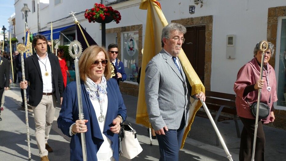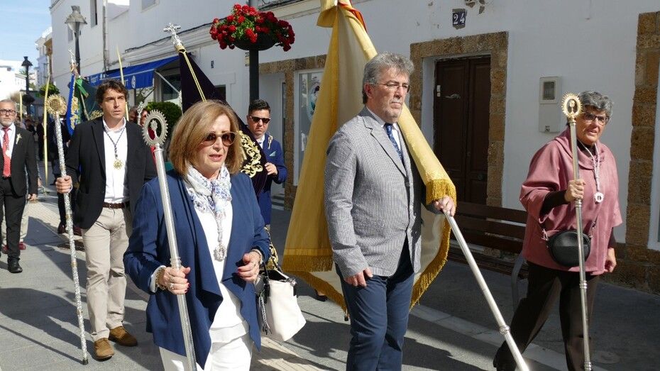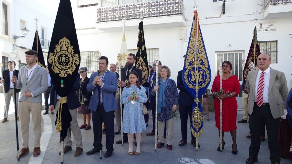 El párroco, tras bendecir el paso de La Borriquita, ya preparado en la capilla de San Roque para su salida a las 18.00 horas, se ha dirigido a la plaza del mismo nombre donde ha entonado la oración que han seguido los fieles y devotos presentes. El alcalde de Rota, Javier Ruiz, y algunos miembros de la Corporación municipal también han estado presentes en este momento destacado.