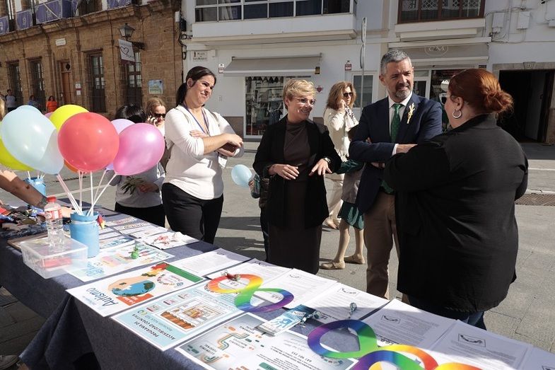 El alcalde de Rota, Javier Ruiz Arana, la teniente de alcalde, el delegado de Participación Ciudadana, José Antonio Medina, la teniente de alcalde Encarna Niño y la delegada de Igualdad, Luisa Fernández, han visitado esta mesa informativa para mostrar el apoyo del Ayuntamiento a la asociación roteña y así destacar la labor de concienciación y visibilización que realizan a lo largo de todo el año.