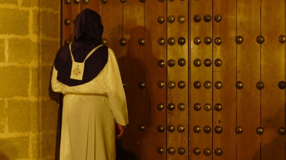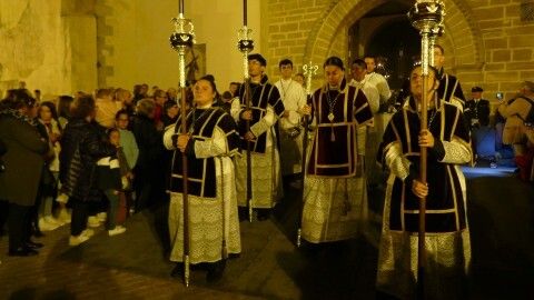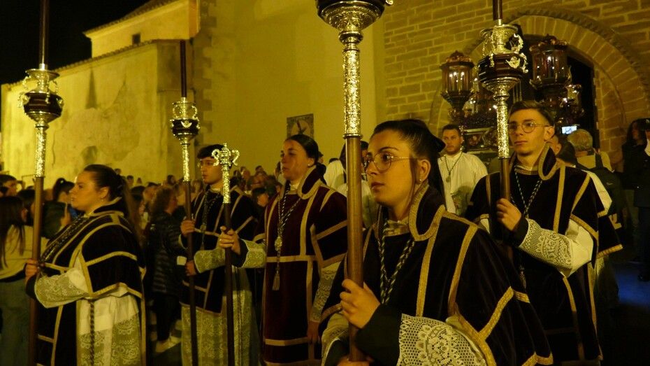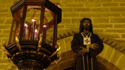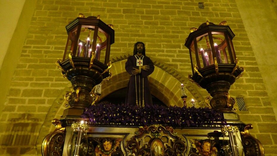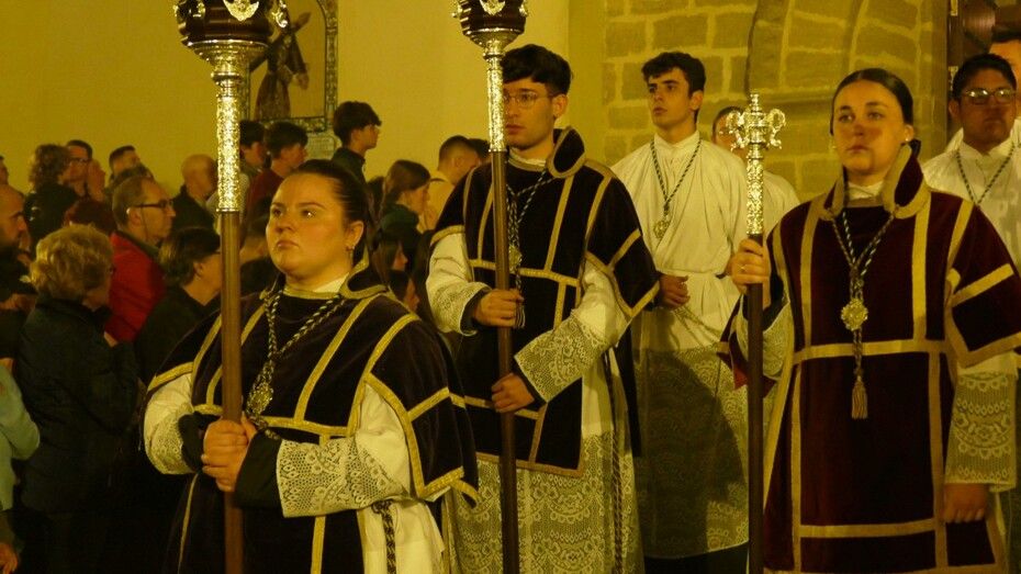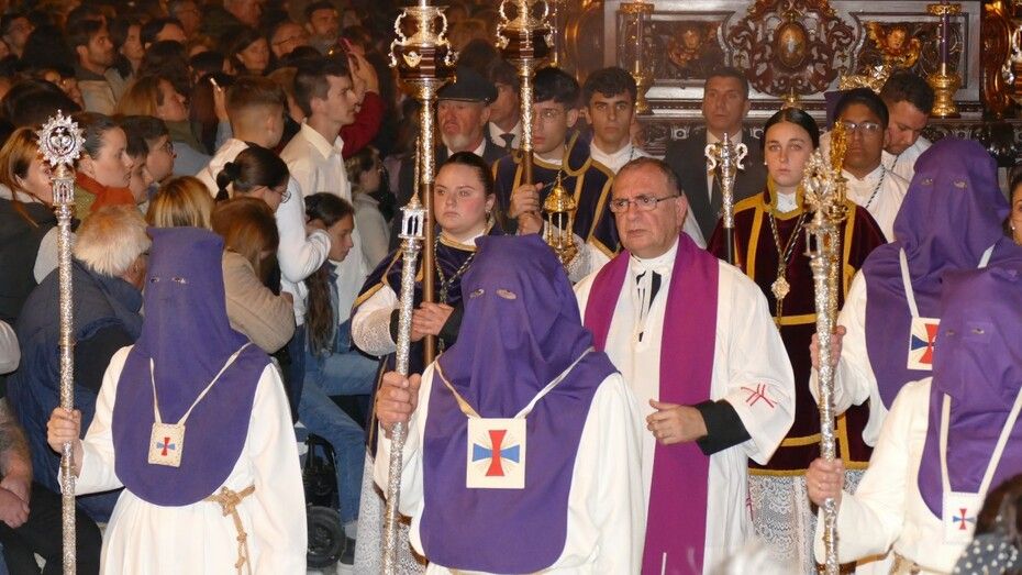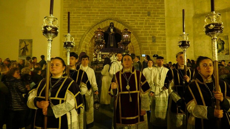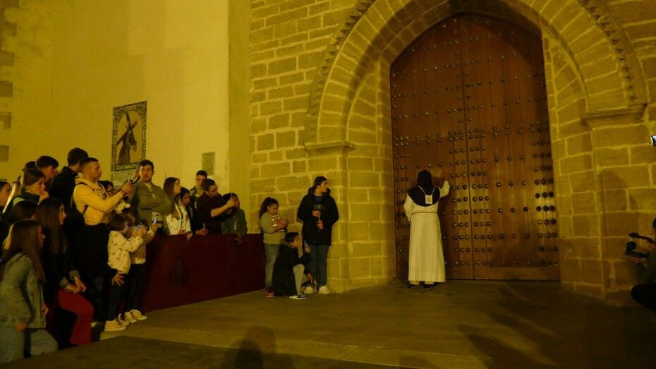 [Img #189047]Cinco minutos pasaban de las diez y media de la noche, cuando un hermano hacía la llamada y las puertas de la parroquia de Nuestra Señora de la O, donde  Nuestro Padre Jesús Cautivo fue trasladado el pasado Viernes de Dolores, se abrieron para dejar pasar a la cruz de guía que daba paso al cortejo.