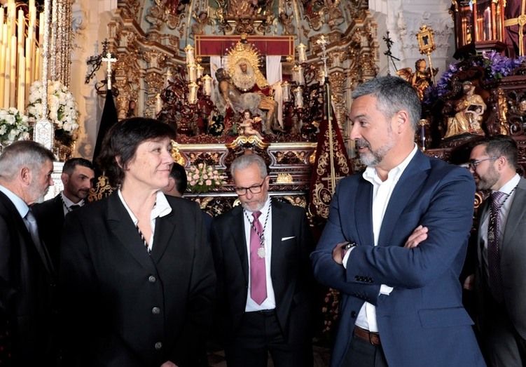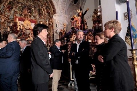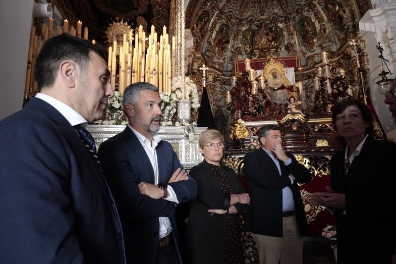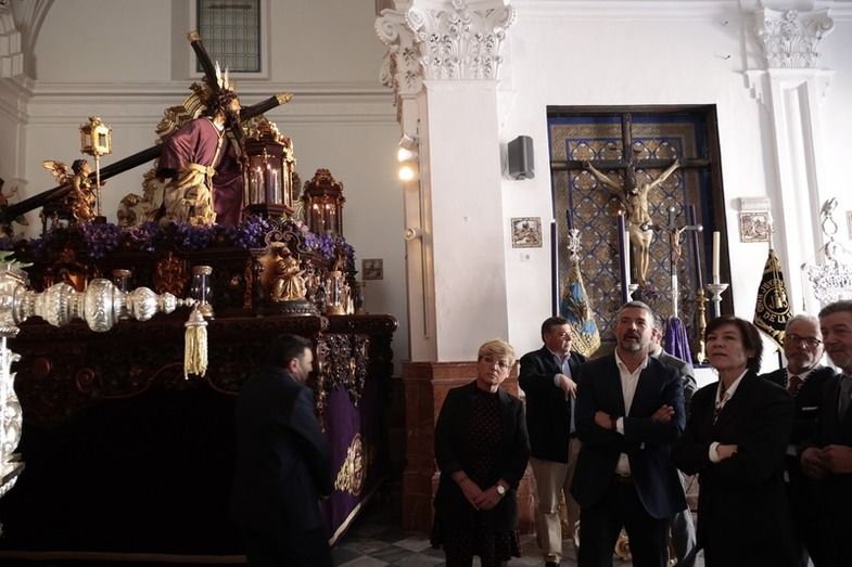 Los representantes municipales se han desplazado hasta la capilla de la Caridad donde han podido conversar con la hermana mayor, María José Fuentes Rodríguez, y otros miembros de la hermandad, en las horas previas a la salida procesional de Nuestro Padre Jesús en sus Tres Caídas y María Santísima de la Caridad junto a San Juan Bautista.