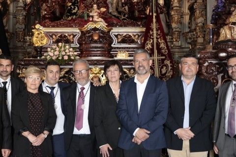 En el transcurso de la visita, han realizado la tradicional ofrenda floral a los pies del Cristo de la  Salud y han deseado que la estación de penitencia se desarrolle con total normalidad y cumpla con los deseos y expectativas de esta cofradía.