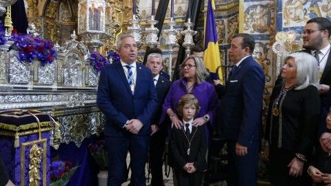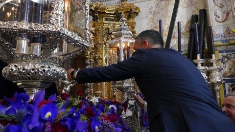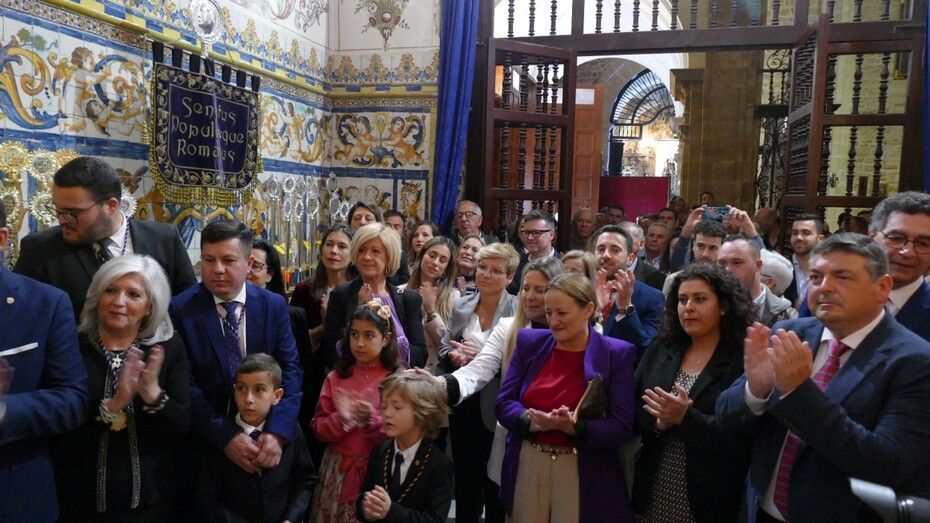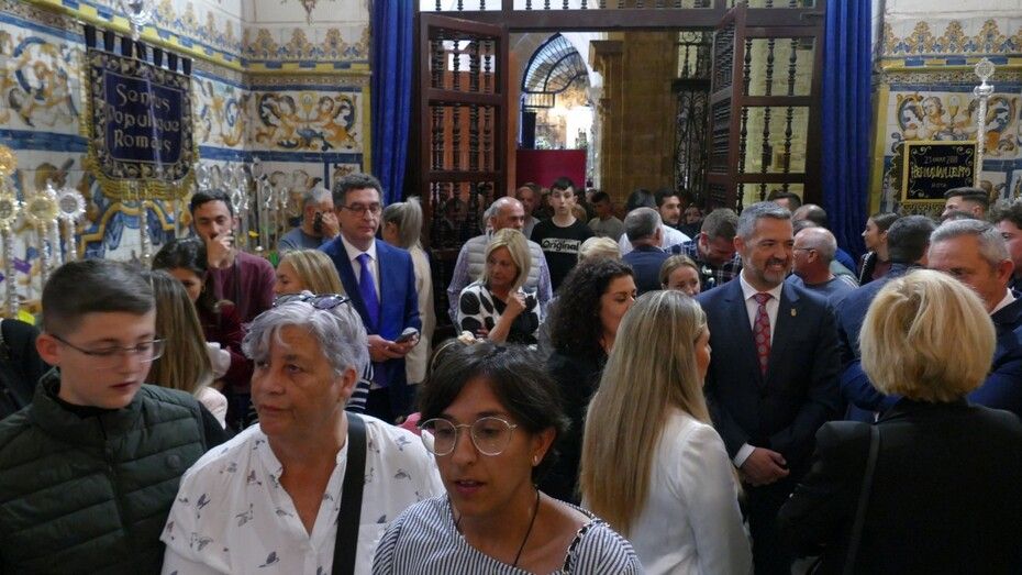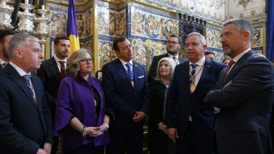 Al breve acto han asistido miembros de la Corporación municipal, de la junta de gobierno de la hermandad y unos pocos fieles, ya que las puertas de la parroquia de la O estaban cerradas al público en general.