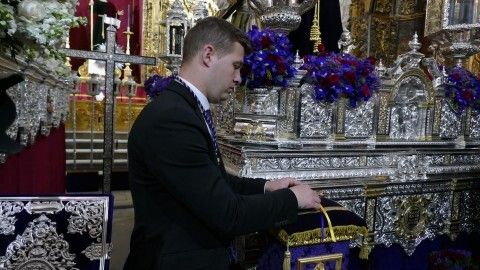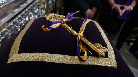 Desde entonces, cada Jueves Santo a las doce del mediodía, como ha ocurrido hoy, el alcalde hace entrega de esta llave al hermano mayor que la deposita a las plantas de Jesús, aunque en esta ocasión, ha sido el propio Javier Ruiz Arana el que ha hecho los honores, colocándola en las manos del angelito que está situado a los pies del Señor.