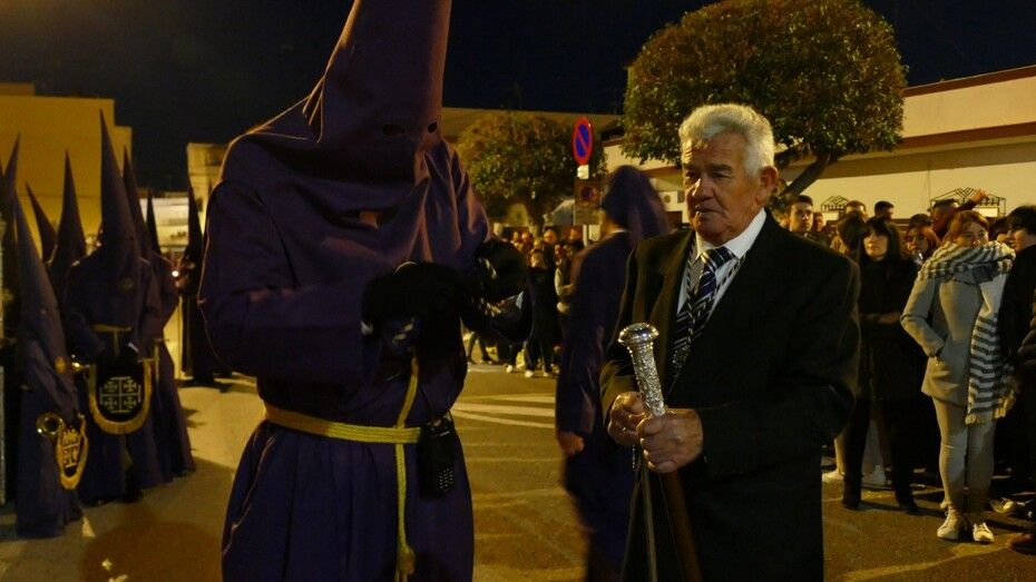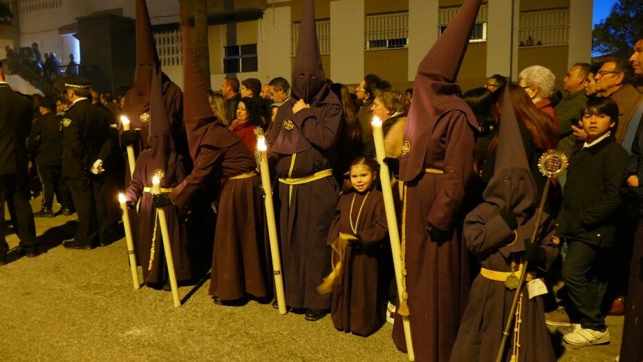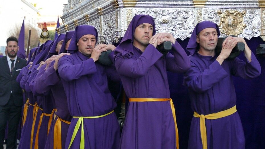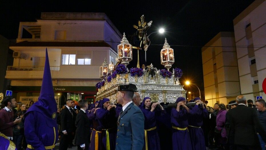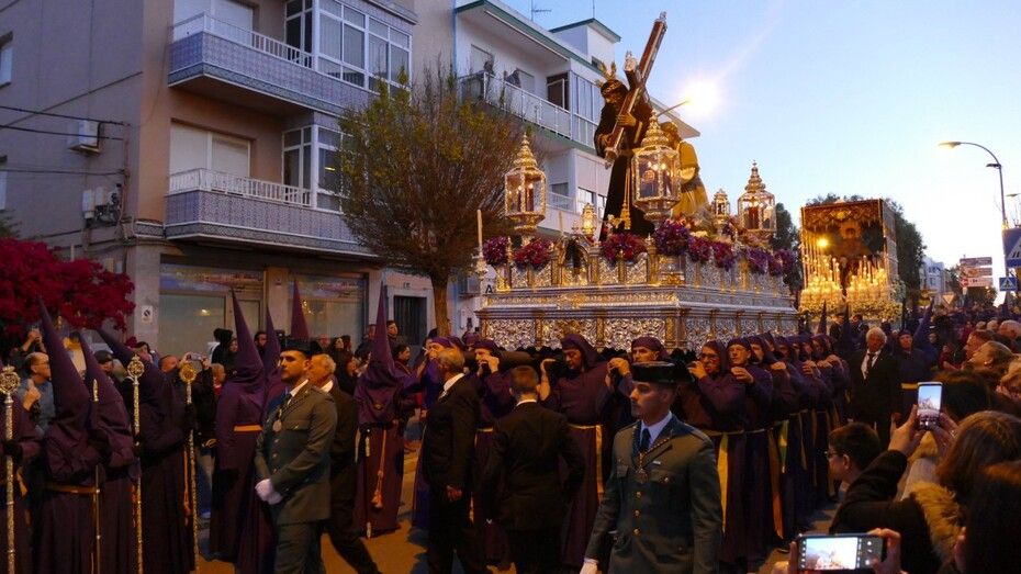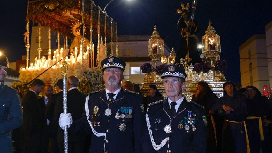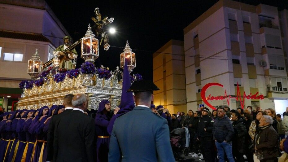 Con la marcha "La saeta" arrancaba lo que para muchos ciudadanos ha sido un acierto por parte de la hermandad, repitiendo una imagen que permite ver al Nazareno y la Amargura al unísono, precedido por los dos cuerpos de acólitos, la escolta de la Policía Nacional gracias a ASACRO y la Guardia Civil, a la que se sumaba metros más adelante una pareja en representación de la Policía Local.