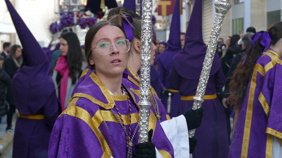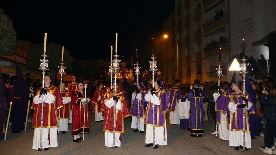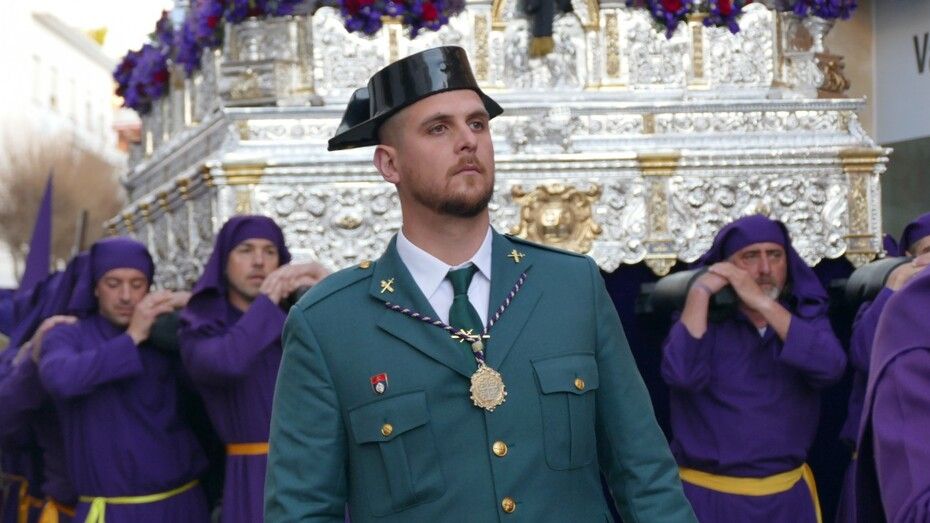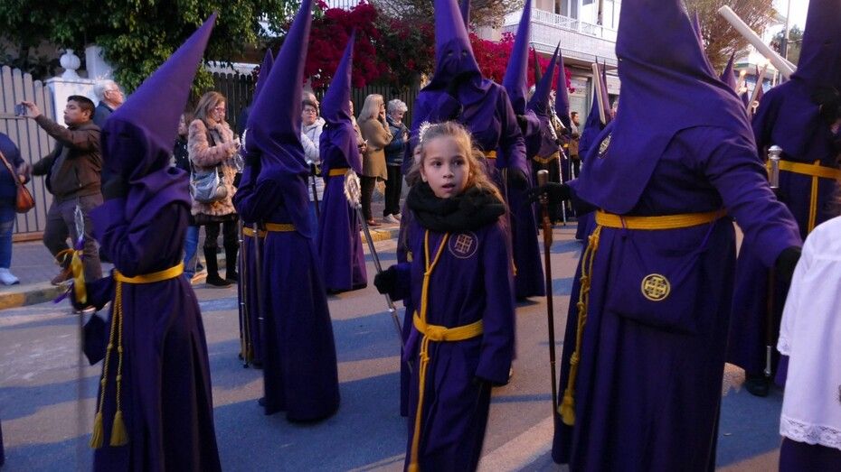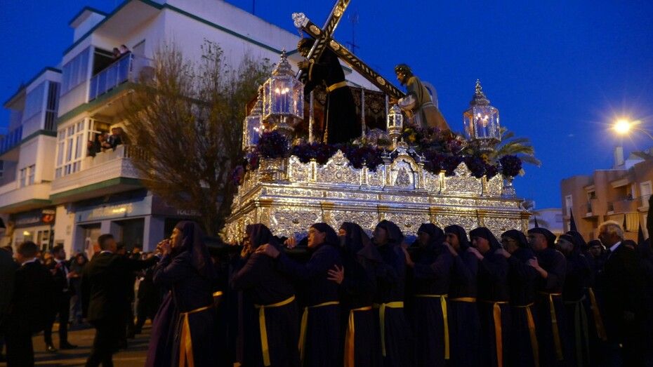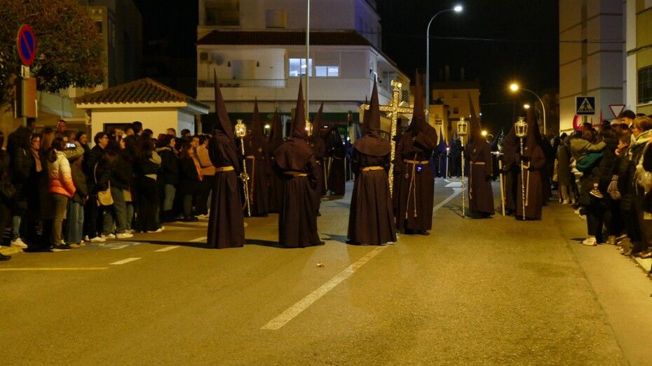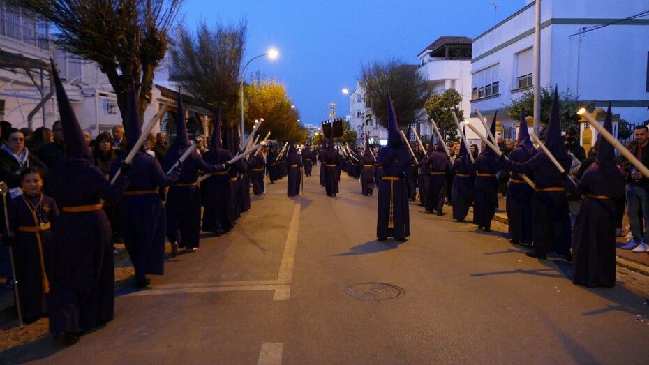 Con la marcha "La saeta" arrancaba lo que para muchos ciudadanos ha sido un acierto por parte de la hermandad, repitiendo una imagen que permite ver al Nazareno y la Amargura al unísono, precedido por los dos cuerpos de acólitos, la escolta de la Policía Nacional gracias a ASACRO y la Guardia Civil, a la que se sumaba metros más adelante una pareja en representación de la Policía Local.
