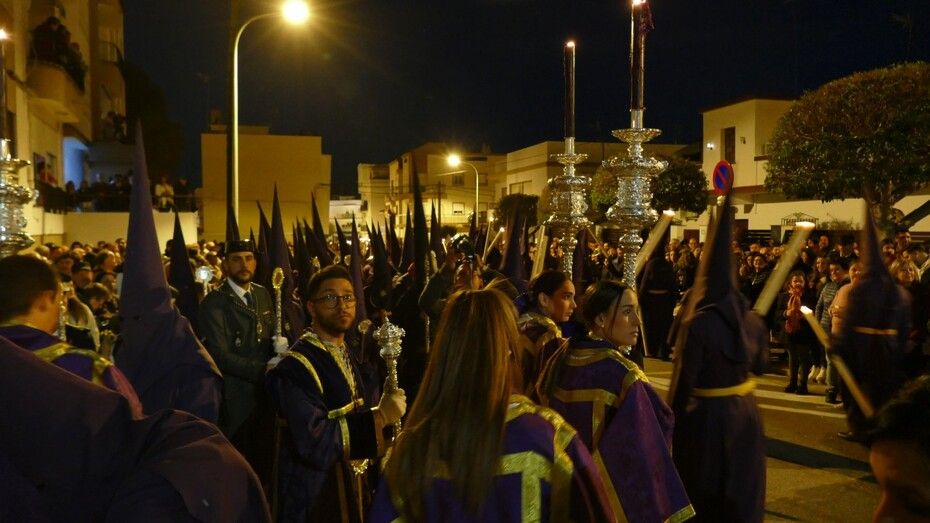 Las calles, desde luego, estaban llenas de roteños y turistas que han arropado a los dos titulares de la Madrugá de Rota que se vive en color morado y con mucha devoción. Muchos han sido los que llevan toda la noche en vela, acompañando a Jesús, y otros, los que han madrugado para hacerlo en el trayecto final hasta que a las 12.30 horas se recoja en la parroquia de la O.