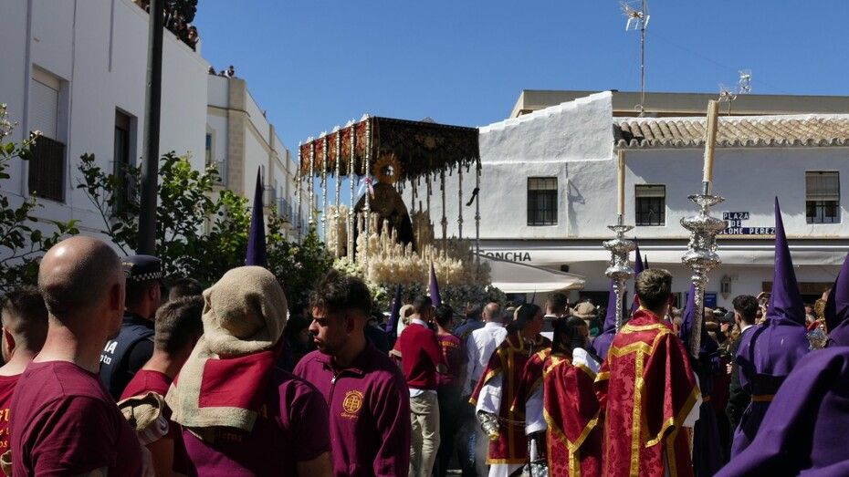 Buenas sensaciones ha dejado esta salida procesional llena de momentos emotivos y  fervor que son un claro ejemplo de lo que Rota siente por su Señor. Así ha quedado demostrado en una recogida que ha estado marcada por las altas temperaturas y por el viento de levante, impidiendo este último que el paso del Nazareno bajara hasta el muelle pesquero, como es habitual, para bendecir las aguas donde faenan los marineros.  Esta decisión, preservando la seguridad de la imagen ante las rachas de viento, parecía indicar que los titulares de la Hermandad del Nazareno se recogerían casi una hora antes de lo previsto. Pero nada más lejos de la realidad. Eliminar el paso por el muelle solo ha permitido que las cuadrillas de costaleros de la virgen y Jesús se lucieran ante una plaza llena, que ha aplaudido en varias ocasiones el buen hacer bajo las trabajaderas y el arte de las bandas de música que han acompañado a los titulares: la Agrupación Musical Rosario de Crevillent de Alicante, con el Nazareno, y la banda de la Hermandad del Nazareno con la Amargura.