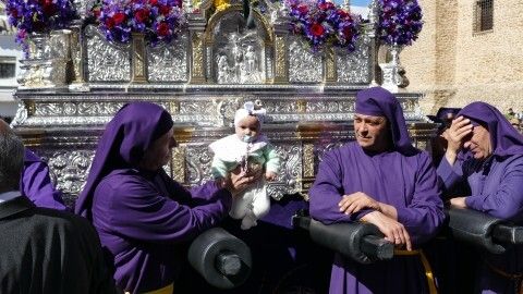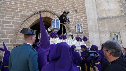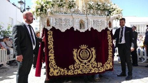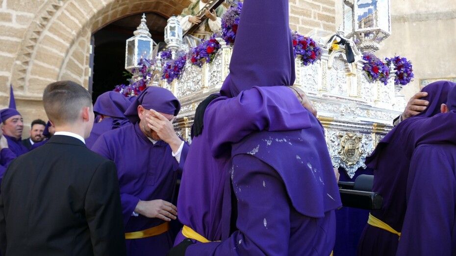 Una larga noche en la que el paso del Señor de Rota se ha girado ante cada enfermo, se ha parado ante ellos y ha intentado con ese gesto reconfortar el ánimo del necesitado. Decenas de ramos de flores han acabado a las plantas de Jesús regalados por devotos que han hecho una plegaria o han dado las gracias con esta ofrenda. Abrazos y besos entre costaleros y hermanos en los últimos minutos de la estancia de Jesús Nazareno en la calle, antes de atravesar definitivamente el dintel de la puerta de la O.
