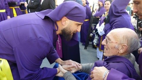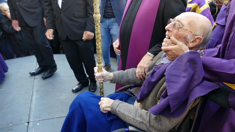 [Img #189553]Y especial momento se ha vivido cuando Antonio Sánchez Rizo, quien fuera hermano mayor de la Hermandad del Nazareno  de Rota durante 12 años, tras haber pasado recientemente un grave problema de salud, se situaba a los pies de Jesús para recibir su bendición antes de despedirse de su pueblo.  Han sido minutos que ha puesto a todo el que estaba alrededor más que con un nudo en la garganta.  Emoción y fe en estado puro ante el Señor de Rota. Los costaleros, capataces y hermanos han mostrado cariño a un hombre que fue toda una insignia en la hermandad nazarena y que ahora, más que nunca, necesita de la fe. Su hijo, que hoy cargaba a Jesús, lo ha acompañado en este momento de bendición en el que también el cura párroco de la O, José Arjona Gil, le ha dedicado unas palabras de entereza.