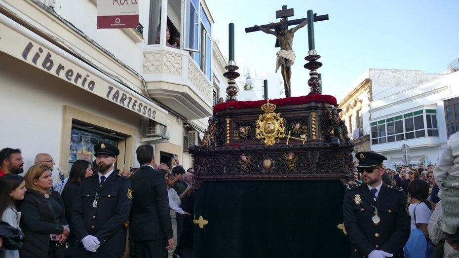 En cualquier caso, la cantidad de turistas que ha recibido Rota en esta semana ha sido un buen preámbulo para esta tarde de Viernes Santo que ha permitido que el Santísimo Cristo de la Veracruz y María Santísima de las Angustias, procesionaran arropados por mucho público en cada rincón.