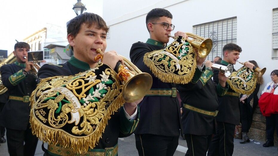 Antonio Martín-Niño "Orteguita" y Luis Miguel Romero Bernal, capataces del cristo y la virgen respectivamente, han guiado a sus cuadrillas de costaleros al son de las marchas interpretadas por la Banda de Cornetas y Tambores de la Asociación Musical "Entre Azahares", de Dos Hermanas en el paso de misterio, y la Banda Municipal de Música de Lora del Río para la dolorosa. Ambas han acompañado con marchas que han ayudado a un mayor lucimiento y que han gustado mucho entre el público.