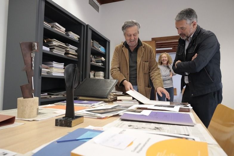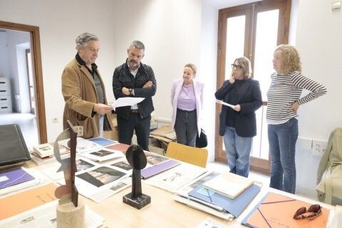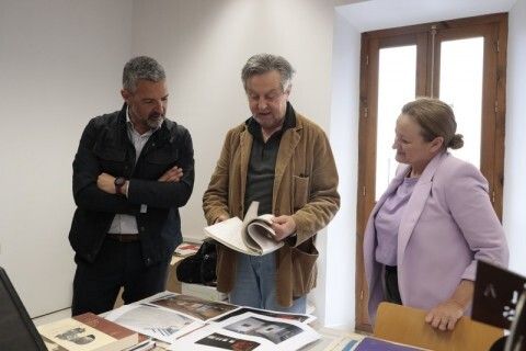 El alcalde de Rota, Javier Ruiz, junto al propio autor y la teniente de alcalde delegada de Cultura, Encarna Niño, han visitado el espacio que se está adecuando para albergar el amplísimo material que hay.