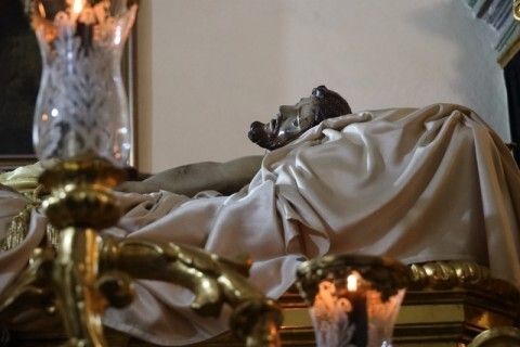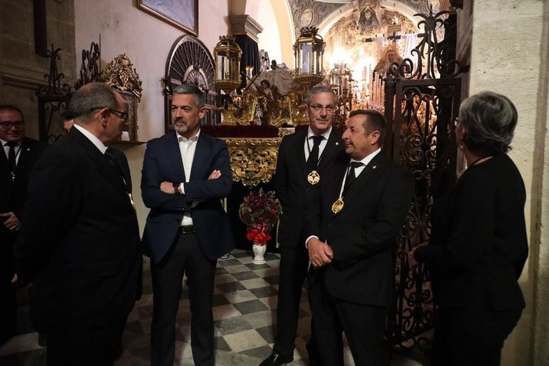 Los representantes municipales realizaron la tradicional ofrenda floral y  desearon una buena estación de penitencia conel Cristo yacente y Soledad de María Santísima.