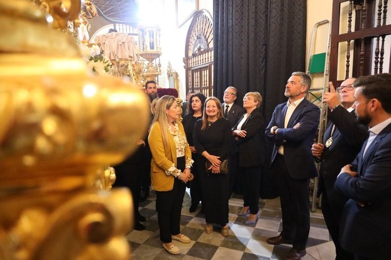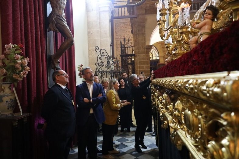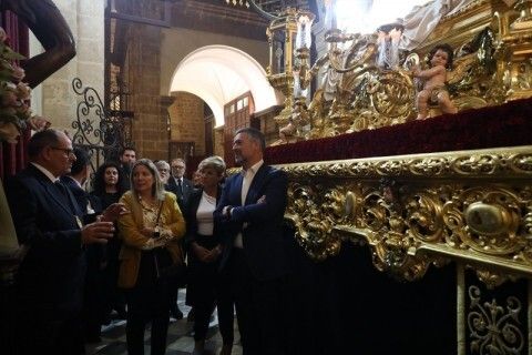 El alcalde de Rota, acompañado por la teniente de alcalde Encarna Niño y los delegados municipales Jesús López, Laura Almisas, Nuria López y Luisa Fernández, conversaron con el hermano mayor, Juan Antonio Martín Rodríguez y miembros de la hermandad, interesándose por los preparativos para una estación de penintencia muy especial.