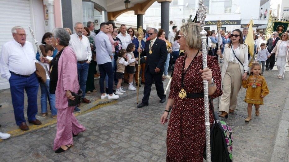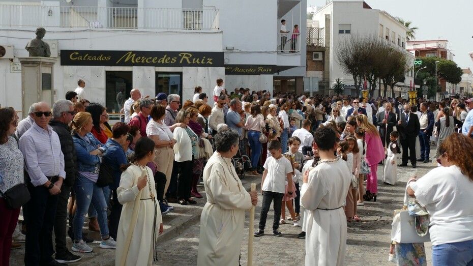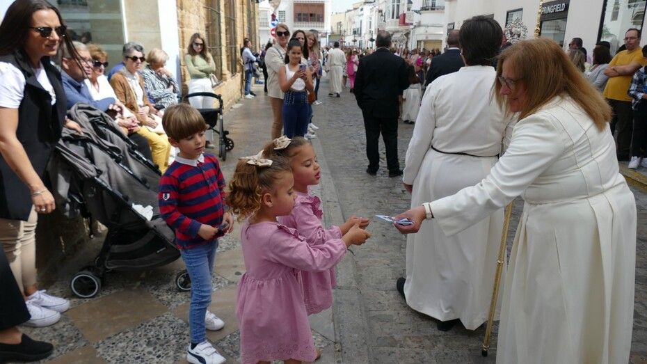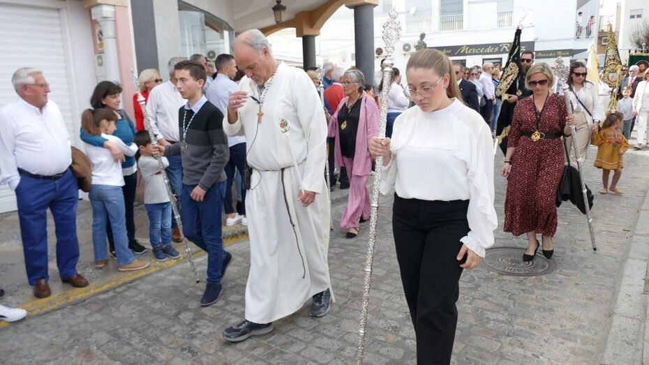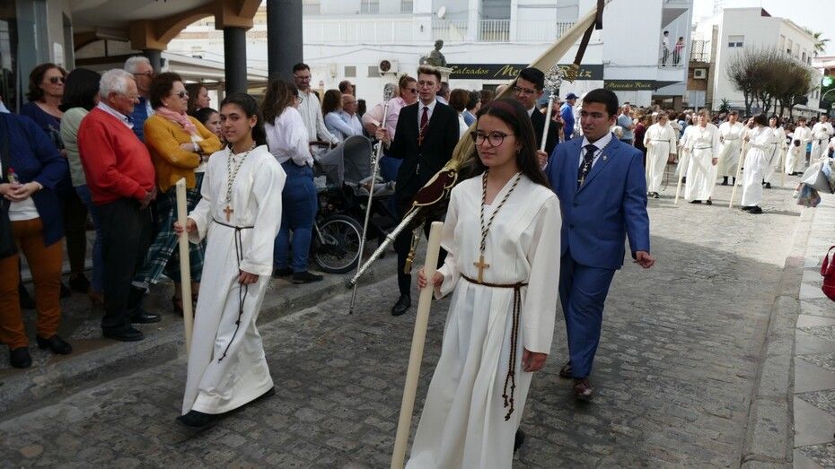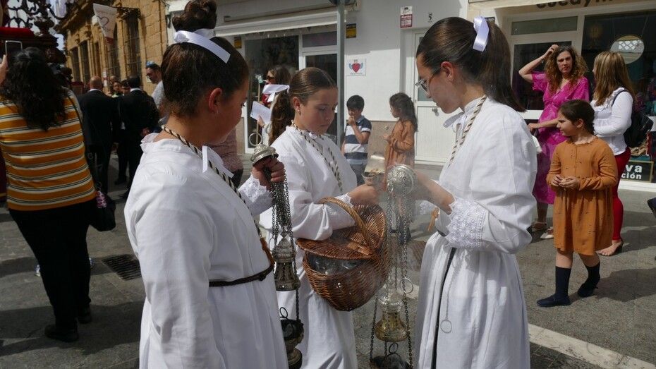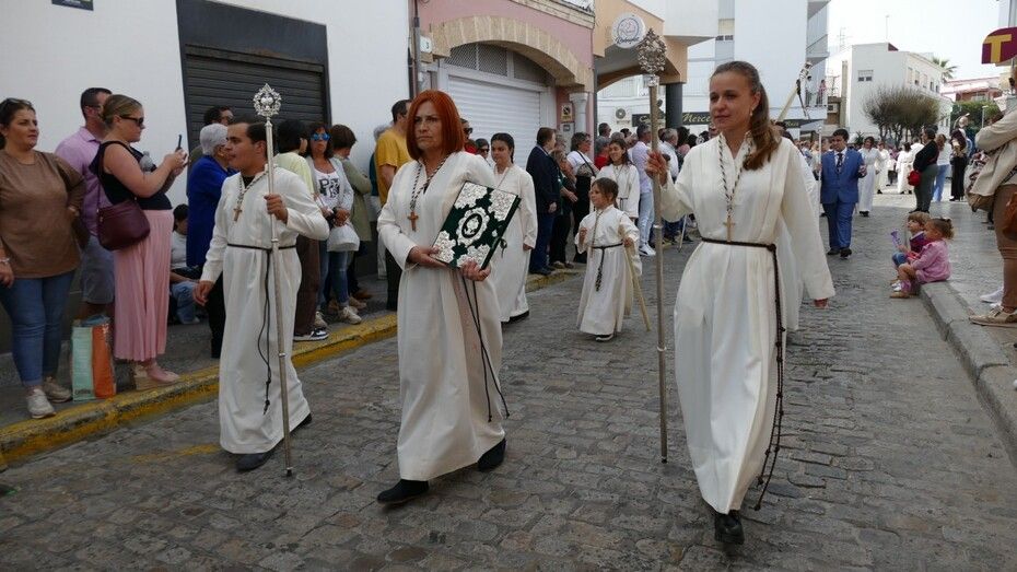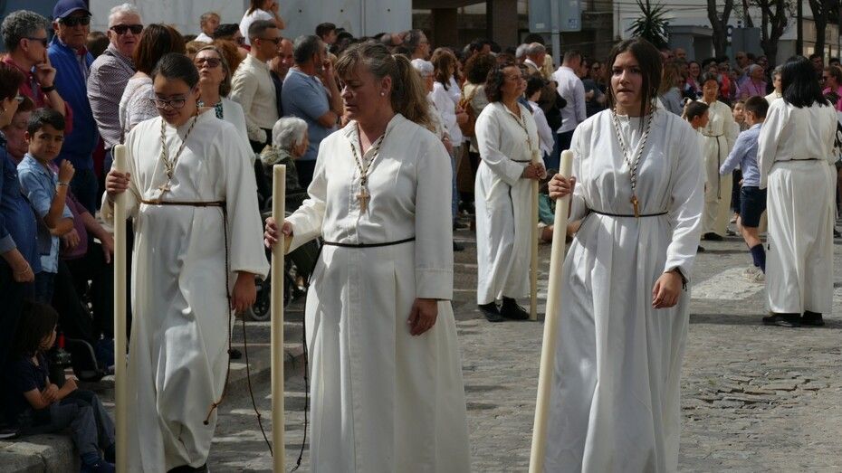 El cambio ha tenido algunas ventajas, como que los cargadores del Santísimo Cristo del Amor y las cargadoras de Nuestra Señora de la Esperanza del Calvario, que se han ido turnando a lo largo del recorrido, no hayan tenido que soportar las temperaturas altas que suelen acompañar a este día y que suponen una dificultad añadida al esfuerzo físico que realizan. Ese, de hecho, era el motivo principal del cambio de hora, evitar algún desmayo como ocurría el año pasado en el seno de la cuadrilla, aunque conllevaba la duda de saber qué acogida tendría en la calle. Varios factores se mostraban en contra ante esta modificación: el cansancio acumulado de una Semana Santa intensa, que el grueso de turistas ya se ha marchado y que al día siguiente es laborable y además se reanudan las clases, lo que obliga a muchos estudiantes universitarios a marcharse y a los más pequeños a acostarse antes. Pero al final, los roteños han acompañado a Jesús Resucitado y en la salida, a las cuatro y media de la tarde, la calle María Auxiliadora se mostraba concurrida. Así lo ha he estado toda la zona centro, sin aglomeraciones y muy lejos de bullicio en la calle, pero arropado.