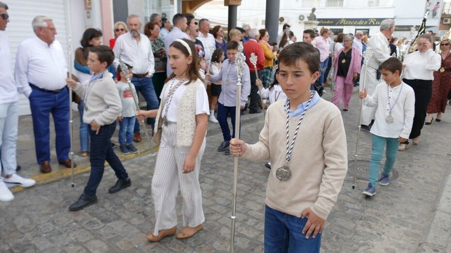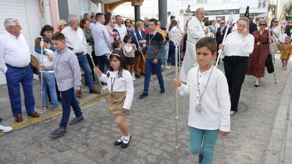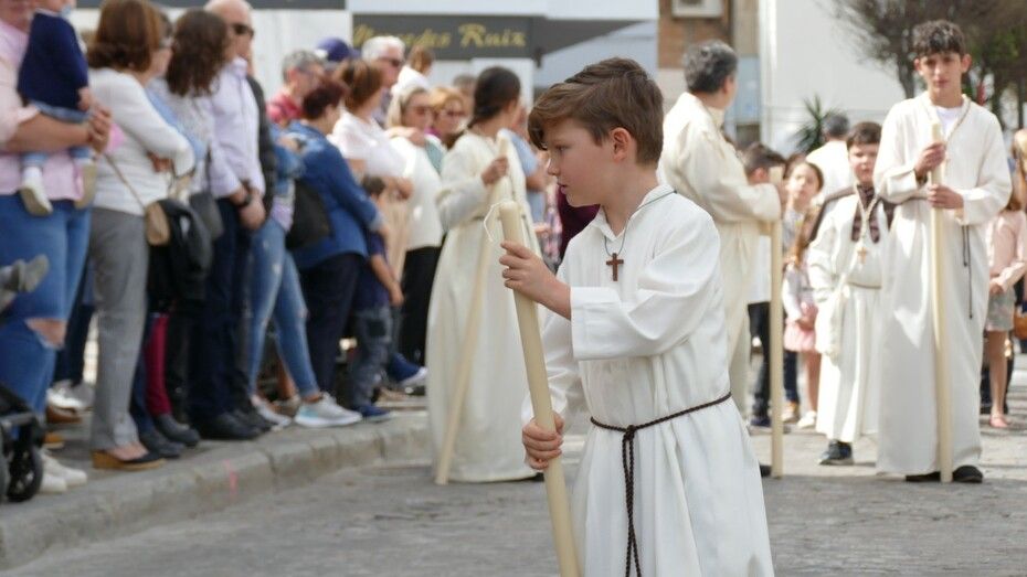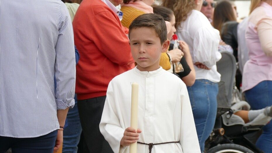 Se ha puesto fin a una semana intensa con un Domingo de Resurrección diferente, donde Jesús Resucitado ha estado acompañado por un cortejo en el que como es habitual, destaca la presencia de niños vestidos de calle agitando campanitas en señal del júbilo con el que se celebra esta jornada. A ellos se han sumado hermanos de la Hermandad del Amor luciendo la túnica, sin antifaz, con varas e insignias, algunos cirios en manos de los pequeños, y una representación del Consejo Local de Hermandades y Cofradías.