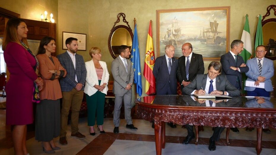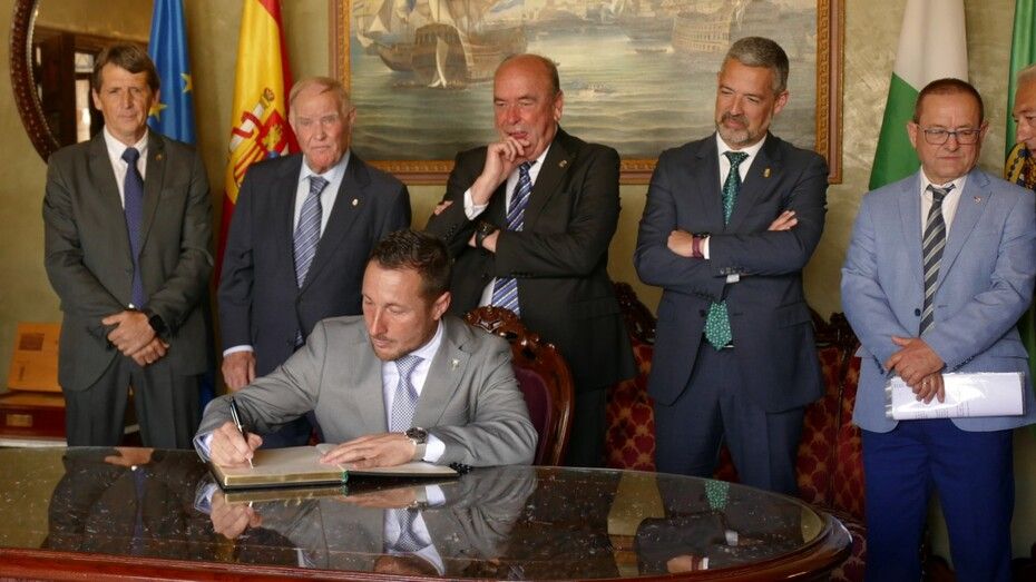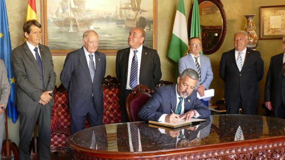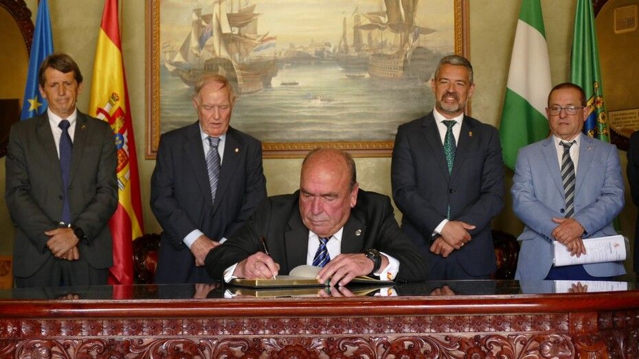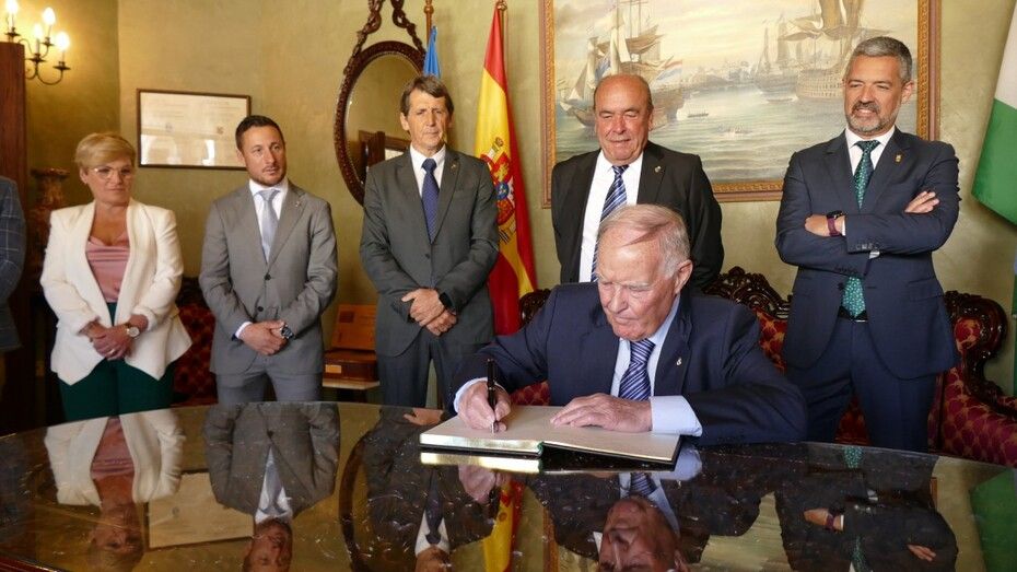 Los dos representantes de la delegación oficial del club blanco han pasado la mañana en la localidad y están compartiendo durante la tarde una convivencia interna con los socios. Antes de todo, han firmado en el Libro de Honor de la Peña Madridista de Rota, como también lo ha hecho el delegado de Deportes, José Antonio Medina, y el alcalde de Rota, Javier Ruiz, deseando éxitos a la entidad y muchos años más formando parte del tejido asociativo de la localidad. José Antonio Salguero y Antonio Ruiz han agradecido el recibimiento de Rota siempre que vienen, ya que uno estuvo en el 30 aniversario y el otro lo hizo cuando la peña cumplió 25. Los dos han mostrado orgullo por la afición que representa esta entidad roteña.