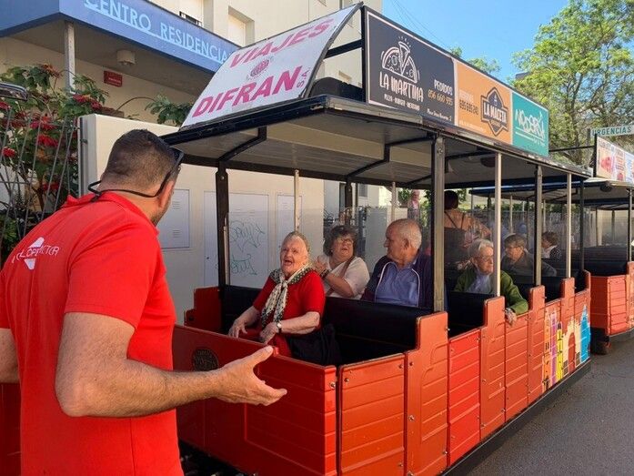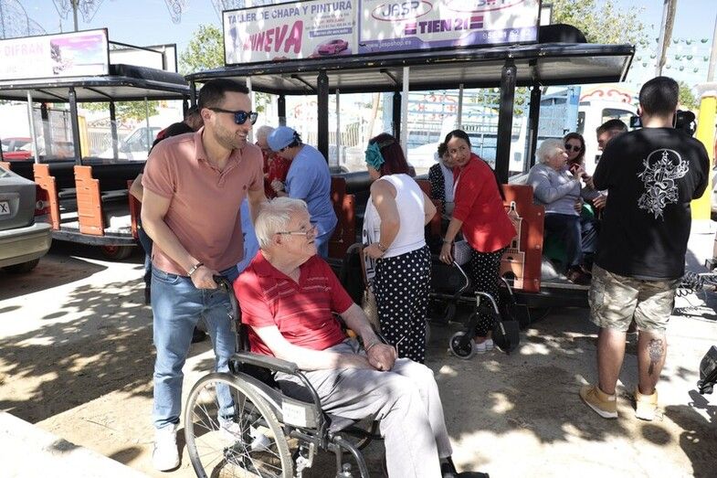 Organizado por la delegación de Servicios Sociales, se ha previsto que estos mayores tuvieran su rato de convivencia en un ambiente feriante, acompañados por la delegada municipal de Servicios Sociales, Luisa Fernández, que junto al delegado Pablo Gómez, ha acompañado a los abuelos en el inicio de esta actividad que comenzaba con el paseo en tren turístico desde la residencia al real, donde también han sido atendidos por la delegada de Fiestas, Laura Almisas.