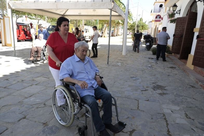 Además de visitar las calles engalanadas del recinto ferial en el tren turístico, los abuelos, junto con el personal de la residencia y familiares, han compartido un almuerzo en el pabellón municipal.