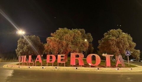 El Ayuntamiento de Rota iluminó varias rotondas de rojo por el Día Mundial de la Cruz Roja