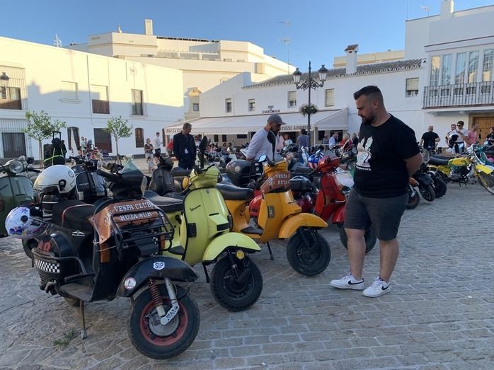 Más de 200 vesperos se han venido hasta la localidad para participar en la IX Vesparoth con la que el Vespa Club Ruta Sur ha celebrado su décimo aniversario como club que integra a los amantes del clásico modelo de moto italiana que tantas pasiones levanta.