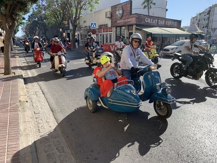 La zona del paseo marítimo, del casco histórico, de Punta Candor y otras calles han sido puntos en los que los roteños y visitantes han podido ver una amplia variedad de vespas, desde las más clásicas a las más modernas, desfilando y llamando la atención en un fin de semana en el que han coincidido también con una concentración de porsches que casi a la misma hora, por otra zona de la localidad, hacía ruta turística.