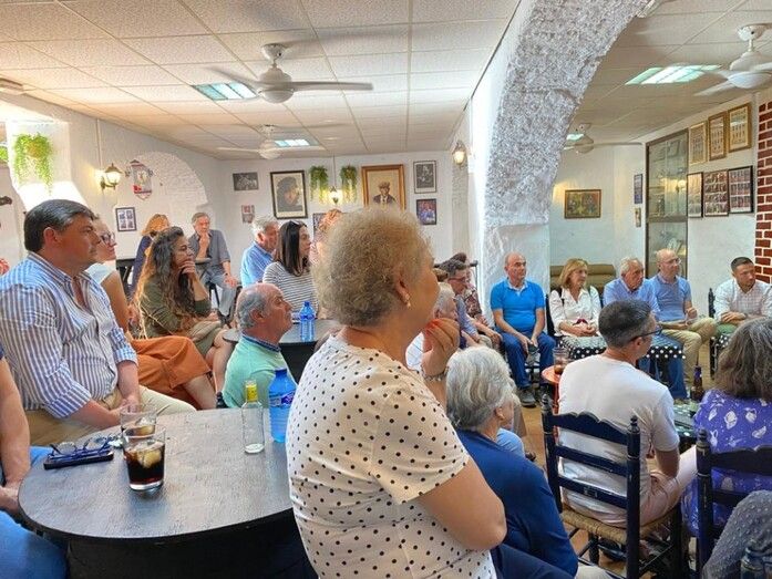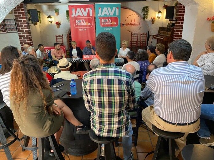 El candidato a la alcaldía de Rota, Javier Ruiz, estuvo acompañado por Encarna Niño, actual delegada de Cultura en el Ayuntamiento, y Esther García, que le precedió en el cargo, propiciando un ambiente de diálogo en el que poder exponer propuestas, necesidades y demandas del sector a nivel local.