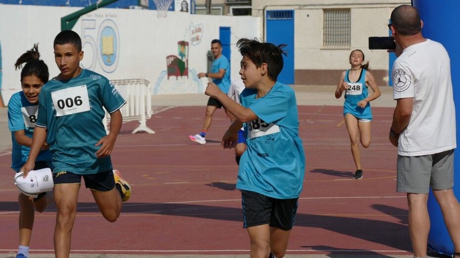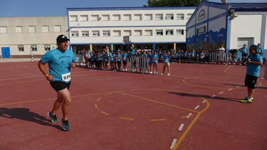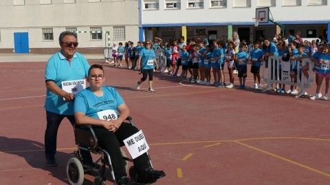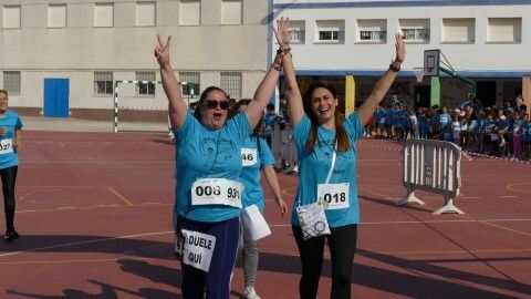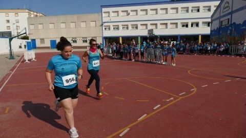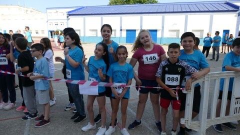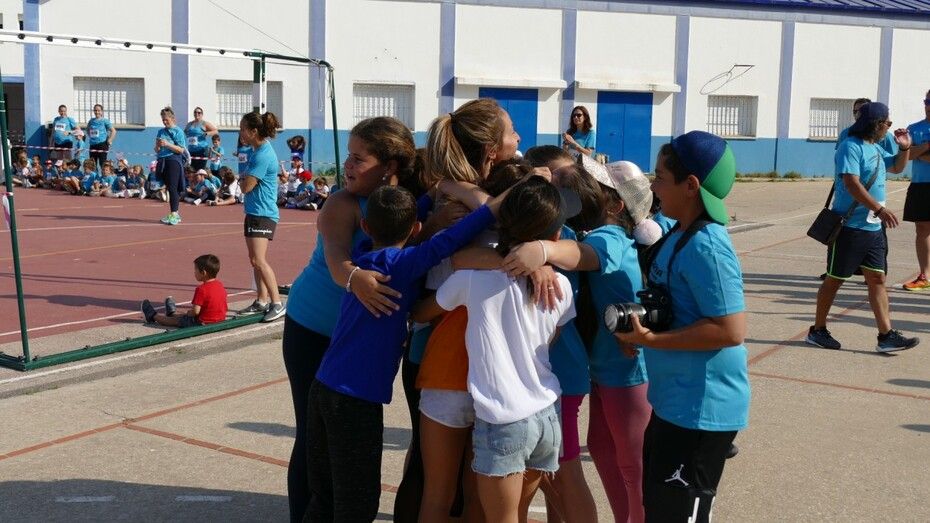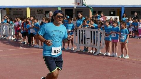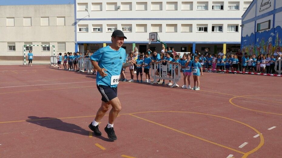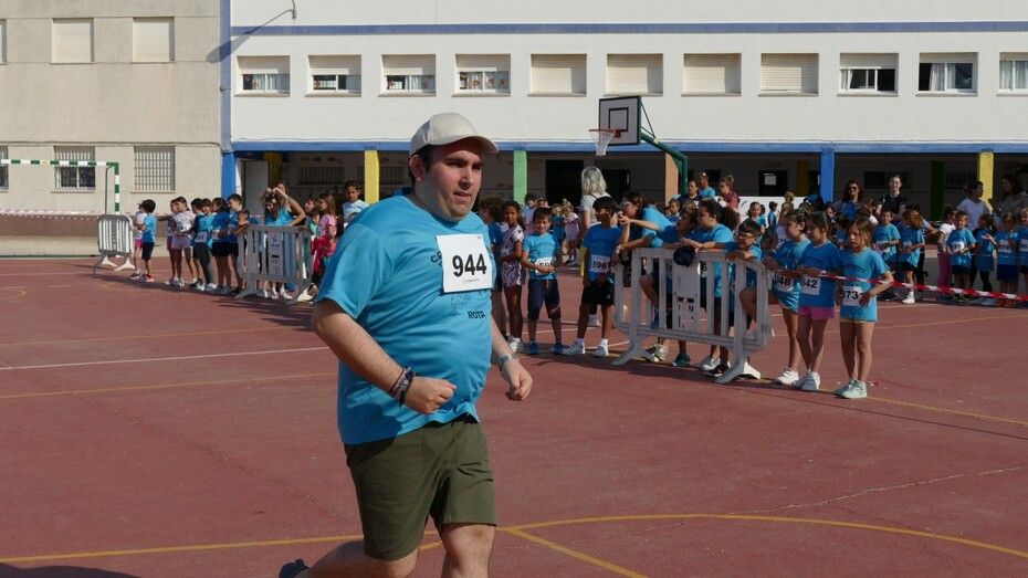 Desde las diez de la mañana, los 280 alumnos de Infantil y Primaria animan desde el patio a los cursos a los que les va tocando realizar la carrera, viviéndose un ambiente lúdico al que se ha sumado la Asociación de Personas con Discapacidad, que también ha corrido con algunos de los chicos llegando a meta tras el esfuerzo.