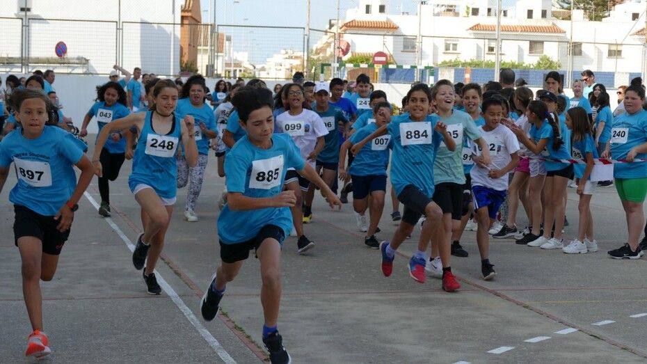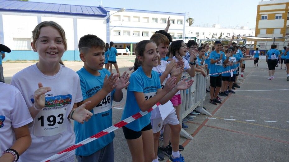 La comunidad educativa del colegio Pedro Antonio de Alarcón está viviendo en la mañana de este viernes una jornada lúdica, de solidaridad y deportiva, gracias a la carrera solidaria que cada año organizan para ayudar a alguna asociación local. Este año, los corredores, entre los que están los alumnos, profesores y padres y familiares de alumnos, corren a favor de la ONG "Humildad y Caridad" para la que han entregado alimentos no perecederos y otros productos solicitados por la asociación para seguir ayudando a familias de Rota que se encuentran en apuros.