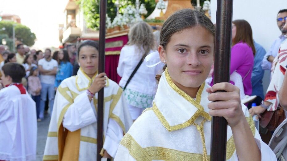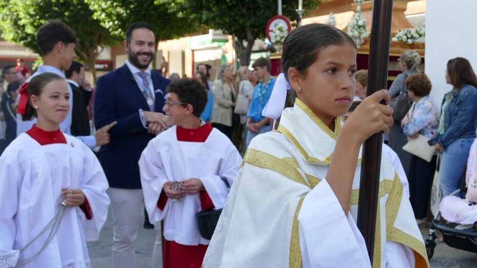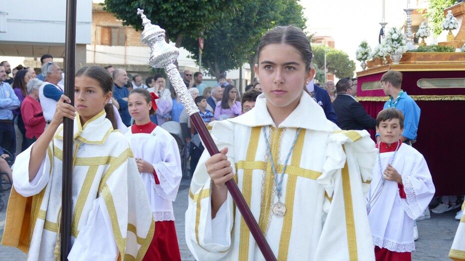 Rota tiene especial devoción a María Auxiliadora y lo suele demostrar cada mes de mayo cuando en el día de su festividad sale en procesión arropada por muchos niños y jóvenes así como miembros de la comunidad salesiana que forman un largo cortejo que hace que las calles del centro se llenen. Hoy, como cada 24 de mayo, ha sido la imagen de la virgen que saca el colegio Salesianos, y el viernes 26 de mayo, a las 19.00 horas, lo hará la talla del colegio de las Salesianas. Cada una procesiona en el entorno de su centro educativo, por lo que en este miércoles, tocaban las calles del casco histórico, por donde María Auxiliadora ha procesionado muy arropada.