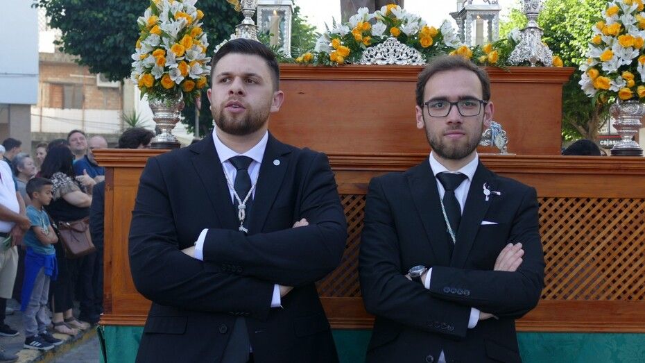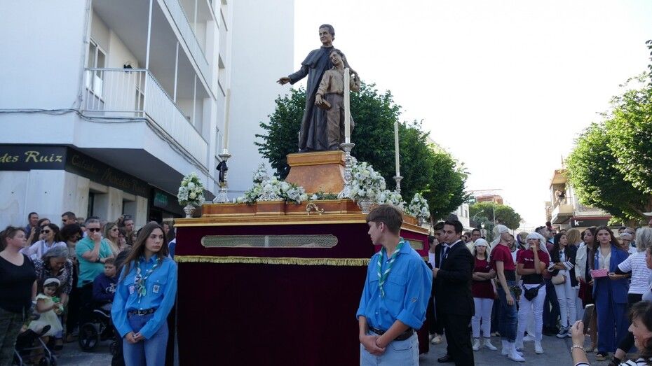Toda una comitiva, a veces con parones propio por lo extensa, que han acompañado a los pasos que forman parte de esta salida procesional, el de Santo Domingo Savio, que cargan los alumnos y jóvenes con el gusanillo cofrade, y el de San Juan Bosco, que también se encargan de portar un grupo de costaleros de corta edad. Tras ellos, luce María Auxiliadora en su paso de plata, ornamentado para una ocasión tan especial donde nunca procesiona sola en una tarde de mayo señalada para muchos.