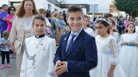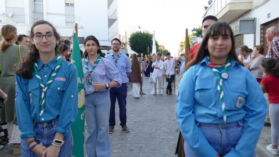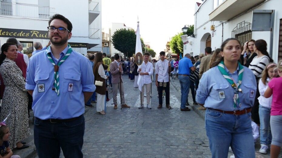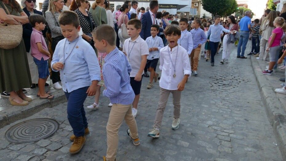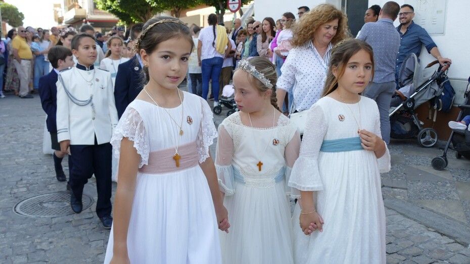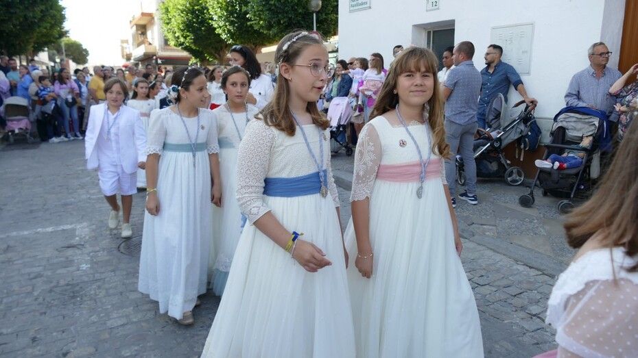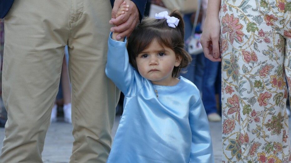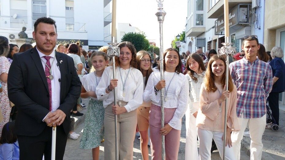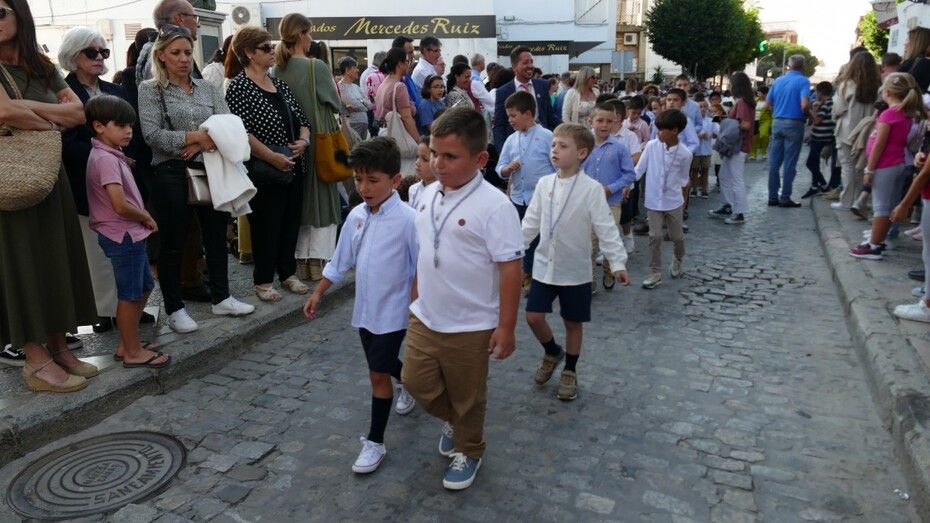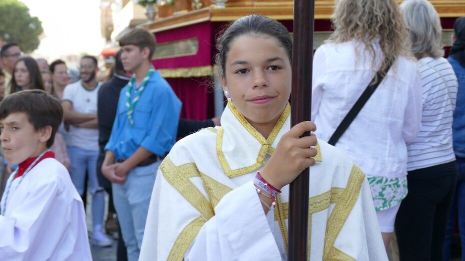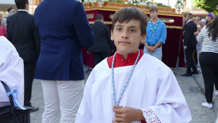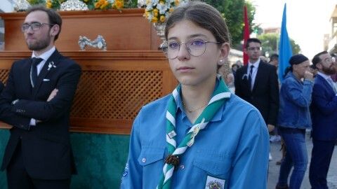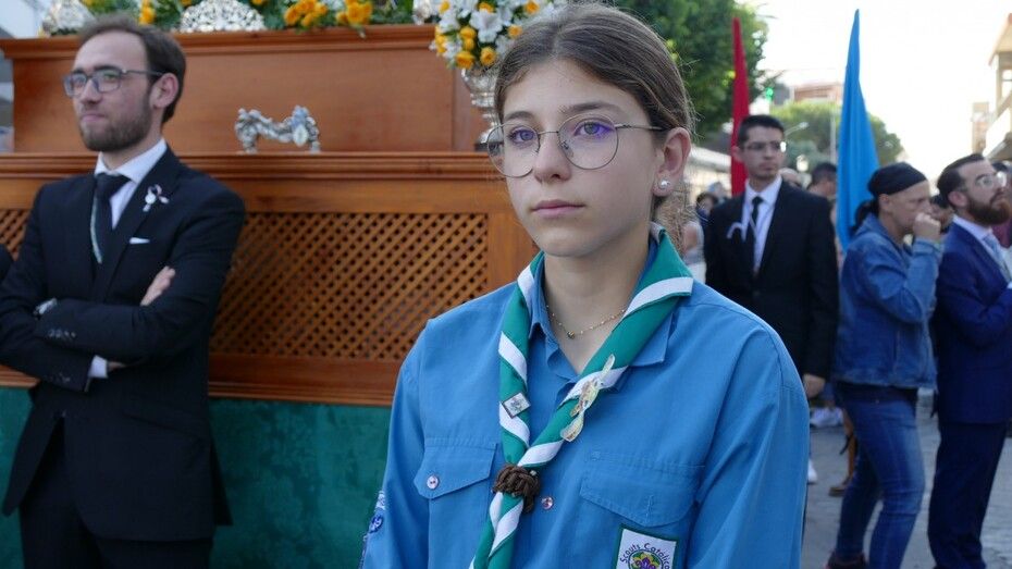 Con cielos despejados, buenas temperaturas y ganas de ver a María procesionar, muchos ciudadanos esperaban a las seis y media de la tarde a pie de acera para ver el largo cortejo formado especialmente, por alumnos del colegio Salesianos y antiguos alumnos que se suman a este día festivo.