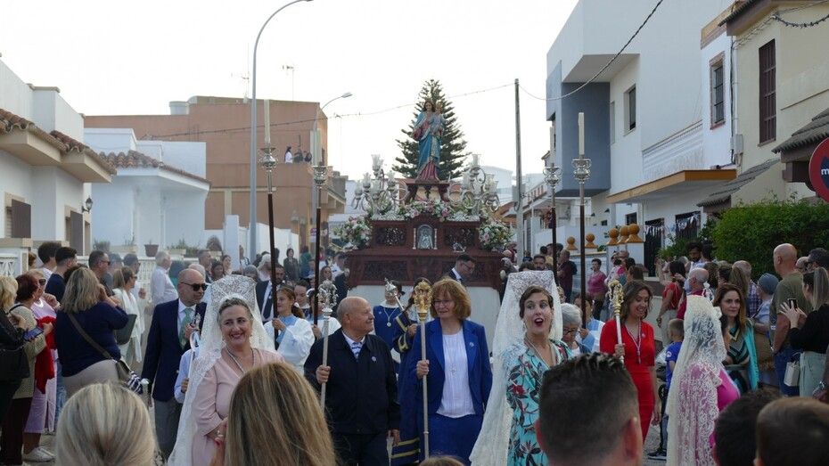 Muy rápido empezó el cortejo y aunque con algún parón, los roteños y especialmente, las familias vinculadas a este centro han disfrutado de la salida un año más, de María Auxiliadora que el año pasado vivió el colofón del 75 aniversario de la llegada de las Hijas de María Auxiliadora a Rota, una comunidad muy querida y respetada en la villa.