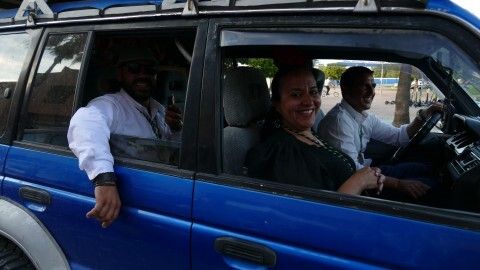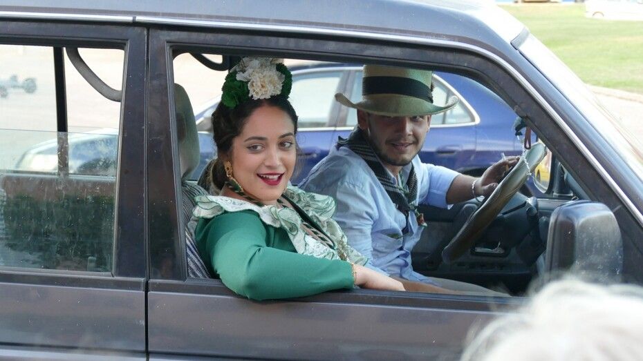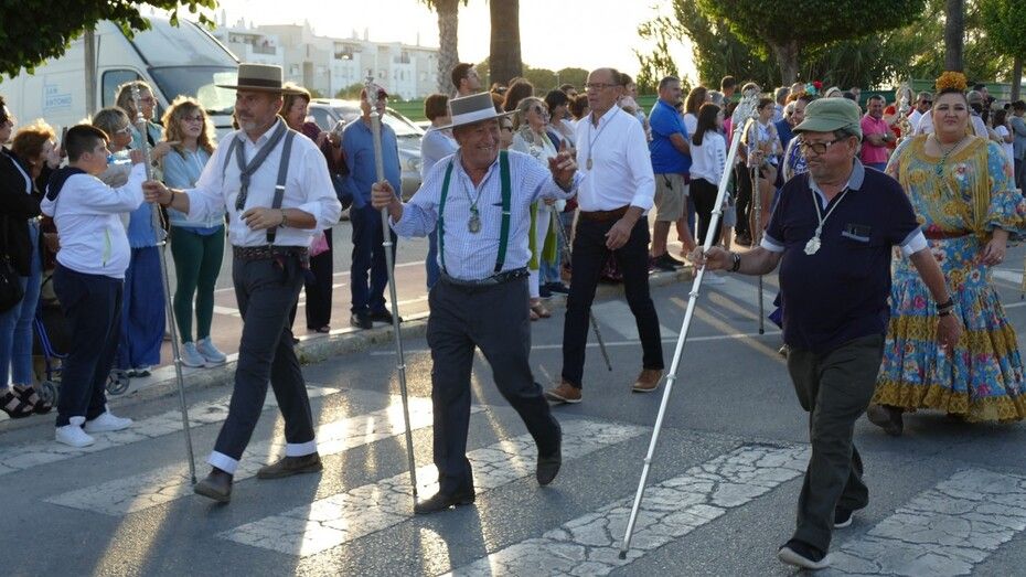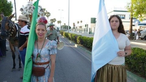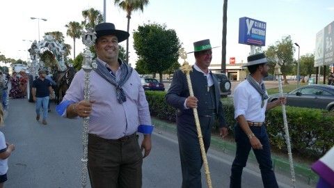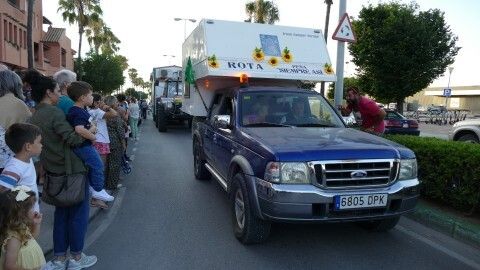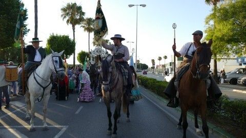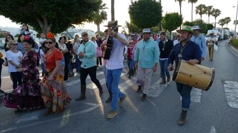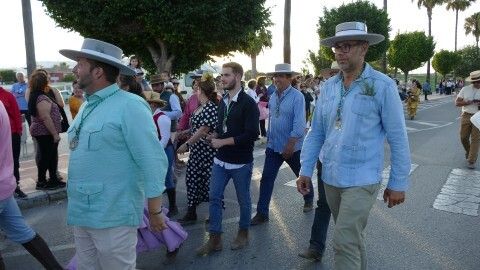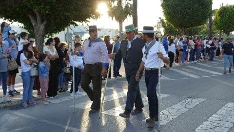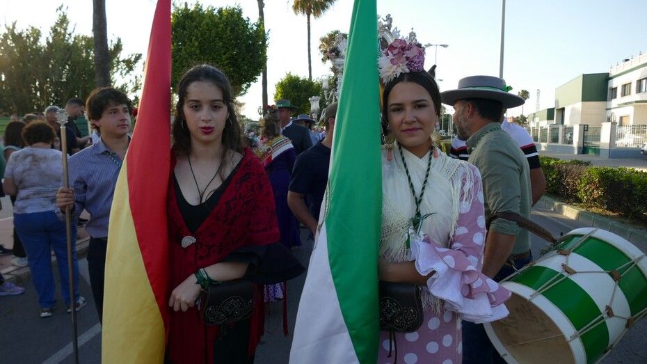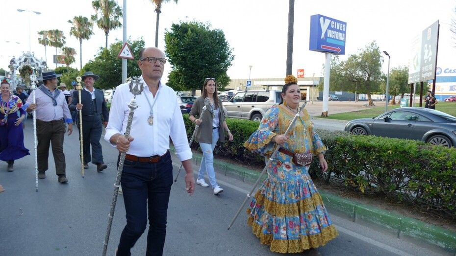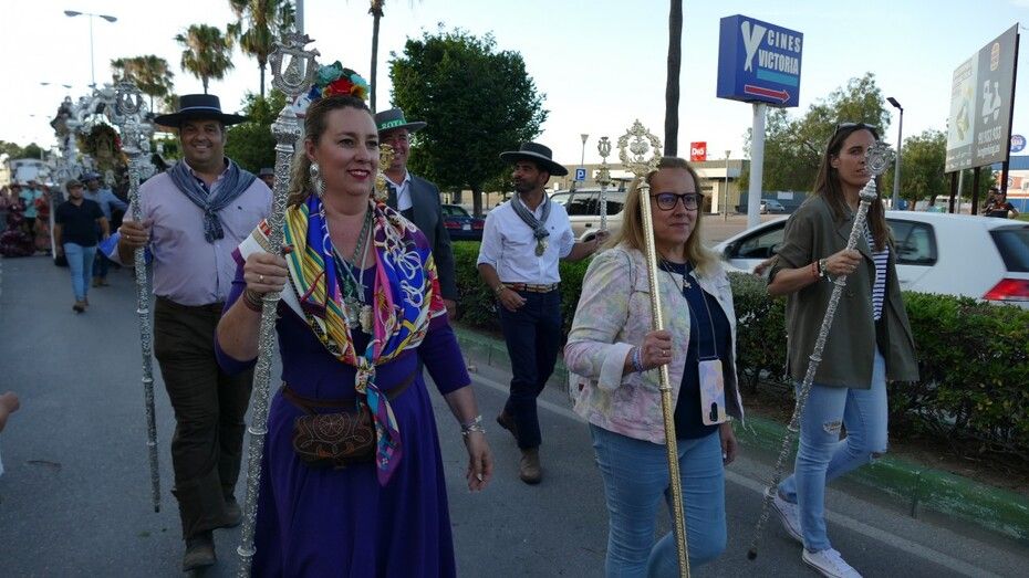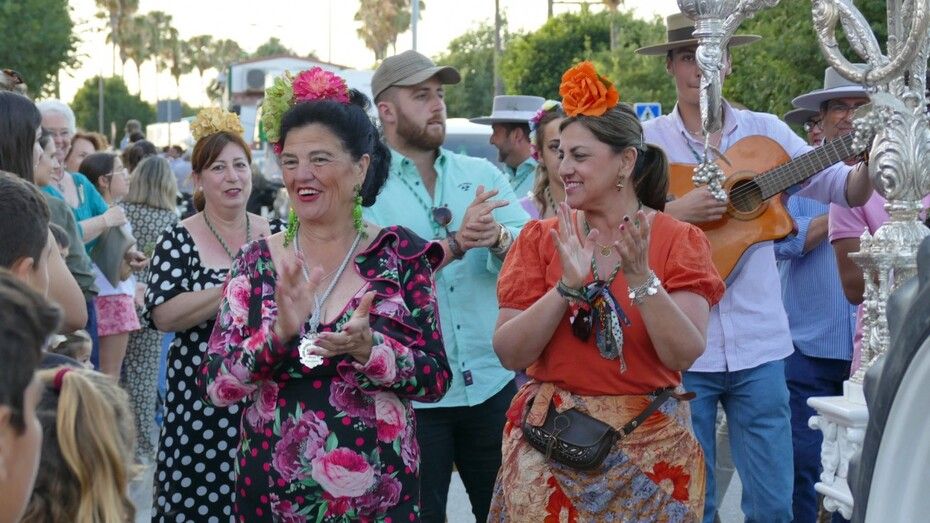 Tras el Simpecado, un grupo cantando, apenas ya sin voz tras largas jornadas de mucho cante y baile que traen a sus espaldas y, para terminar, una larga fila de unos 40 vehículos que han hecho el camino de vuelta de los 109 que partieron. Como es tradición, desde las ventanillas de los coches, los rocieros han ido repartiendo romero a los vecinos que los han esperado pacientemente este año, en un punto diferente al habitual ya que el recorrido, debido a las obras de la avenida María Auxiliadora, se ha visto modificado.