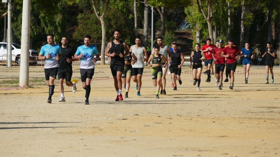Los primeros en salir desde la escuela municipal de hípica, donde estaba la salida y la meta, eran los 112 inscritos de la categoría individual, que lo hacían a las 9 de la mañana, les seguían las 45 parejas y a continuación, a partir de las 9.40 horas, salían los 551 inscritos de los equipos que han dado más ambiente animándose unos a otros y ayudándose para completar todo el recorrido. Entre ellos, han estado los delegados de Deportes, José Antonio Medina, y de Juventud, Pablo Gómez.