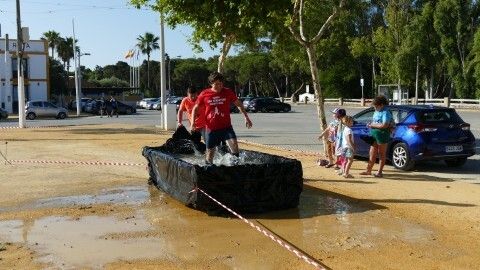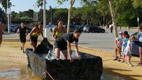 Aunque la mañana del domingo en Rota ha tenido un ambiente muy deportivo, en realidad, competir no era hoy lo más importante. En la I Shark Race que se ha celebrado en la localidad, lo importante era pasarlo bien, de forma individual, por parejas o equipos y ponerse a prueba para superar una serie de obstáculos que han estado dispersos entre el recinto ferial, la trasera al estadio municipal "Alcalde Navarro Flores", la zona de pinares y la playa de Punta Candor.