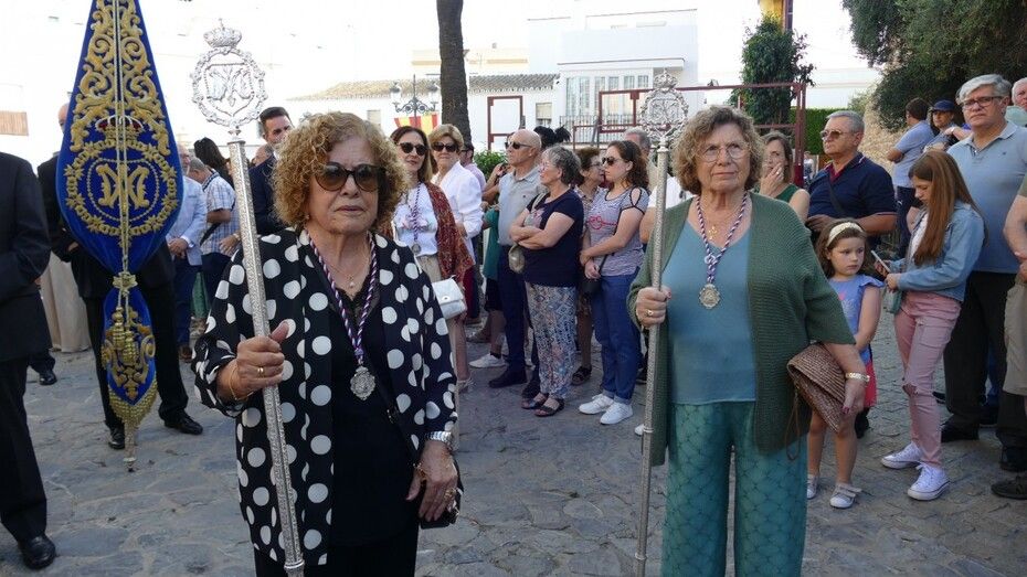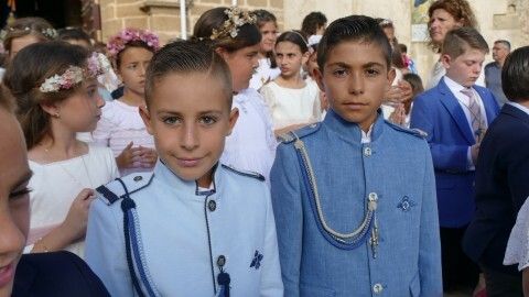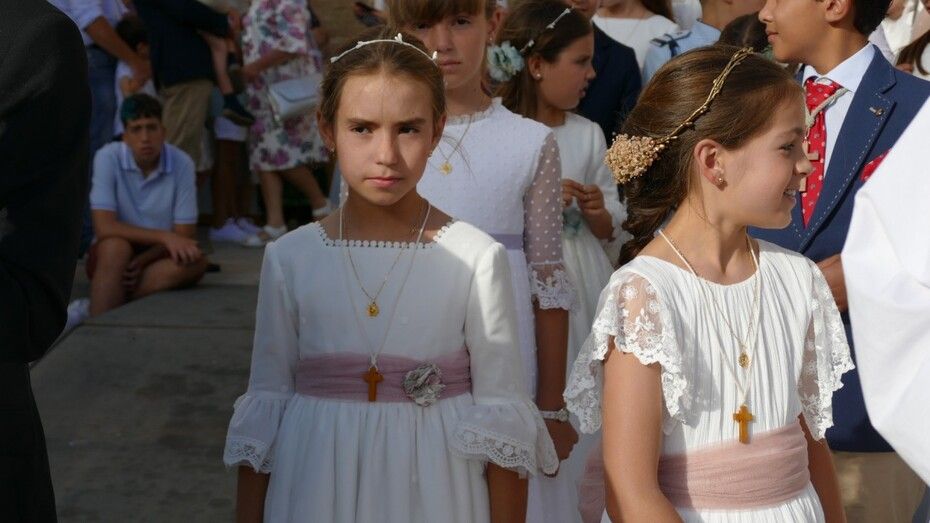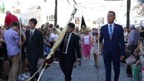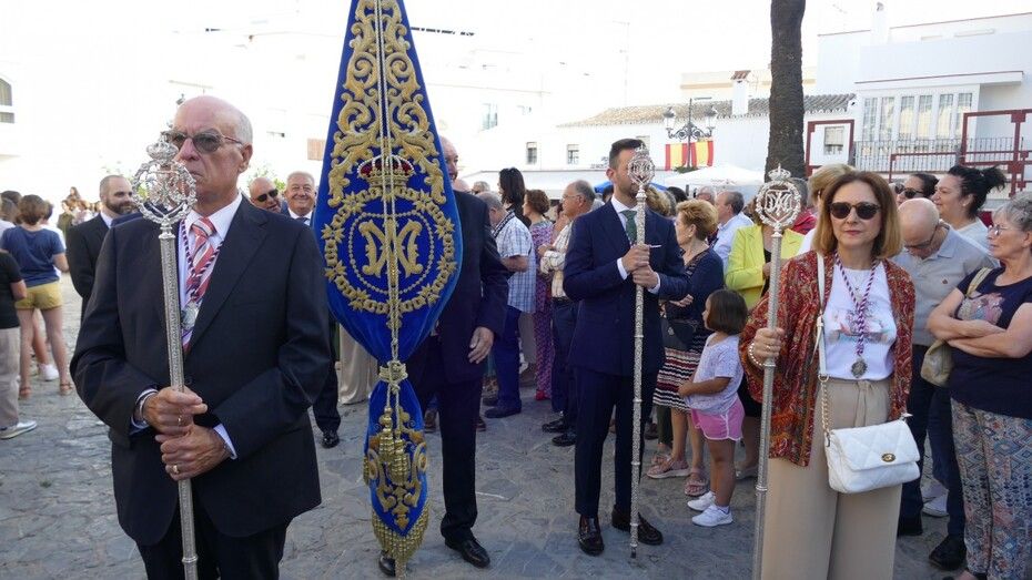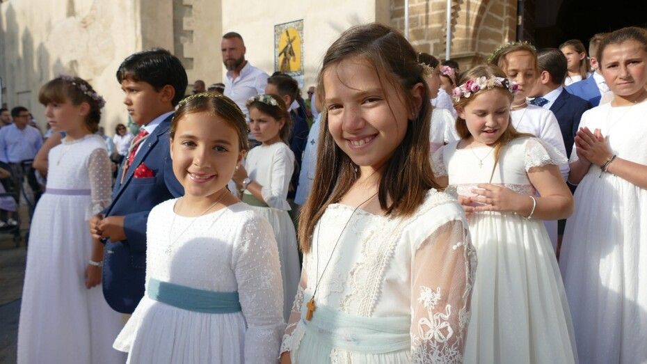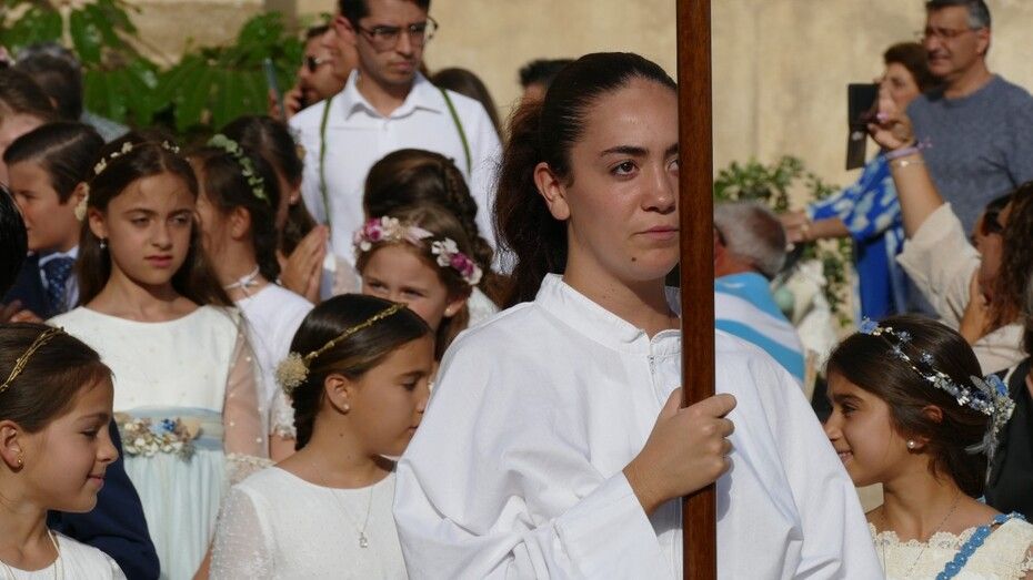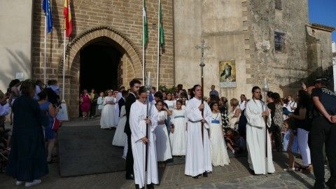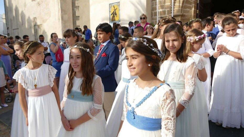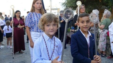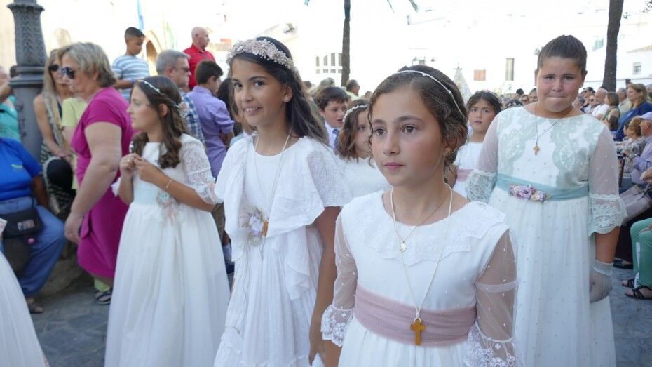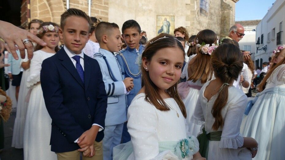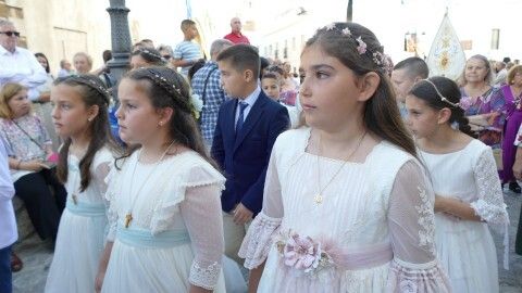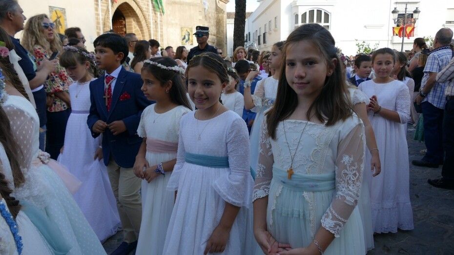 Abría paso una amplia representación de niños que este año han recibido su Primera Comunión, y que en esta ocasión eran bastantes, le seguían representantes de asociaciones parroquiales y de todas las hermandades de penitencia y gloria de la villa con sus estandartes, además de la junta de gobierno de la Hermandad Sacramental y la permanente del Consejo Local de Hermandades y Cofradías.