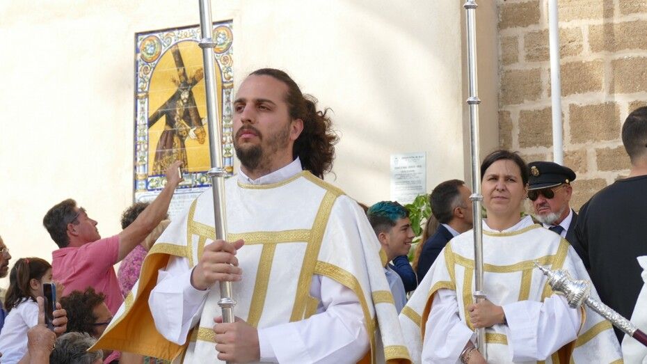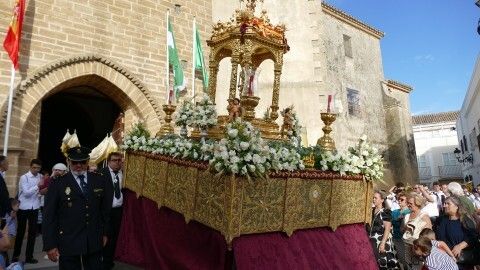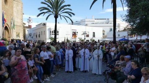 Como en muchos pueblos de la provincia y en otros puntos de Andalucía, la procesión del Corpus Christi ha sido protagonista por las calles de municipios y ciudades como lo ha sido en la tarde de este domingo en Rota, donde el paso dorado que porta la Santa Custodia ha recorrido las calles principalmente, del casco histórico.