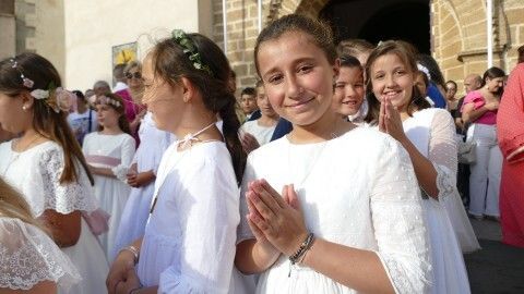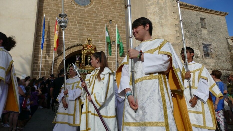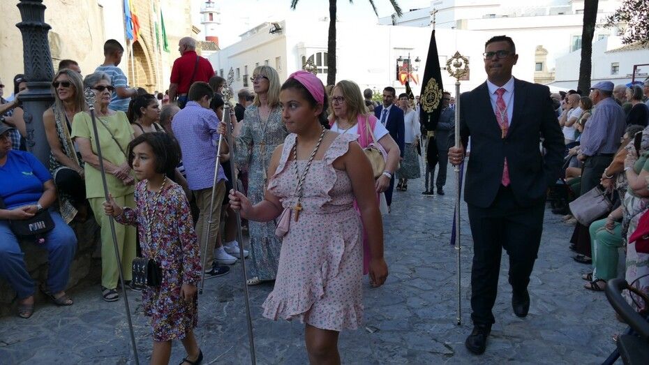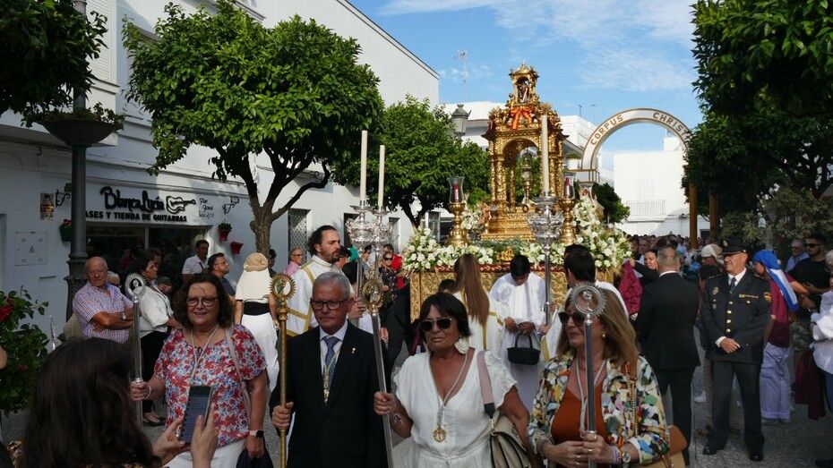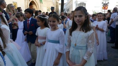 Muchos han sido los roteños que en esta tarde de domingo han querido salir a ver la procesión con la que se conmemora la creencia católica de la presencia real de Jesucristo en el pan y el vino consagrados durante la Santa Misa.