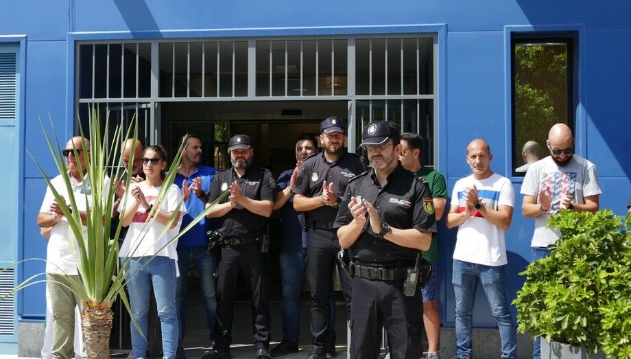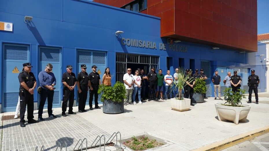 El minuto de silencio a las puertas de la comisaría de Rota ha acabado con un aplauso en memoria del compañero.