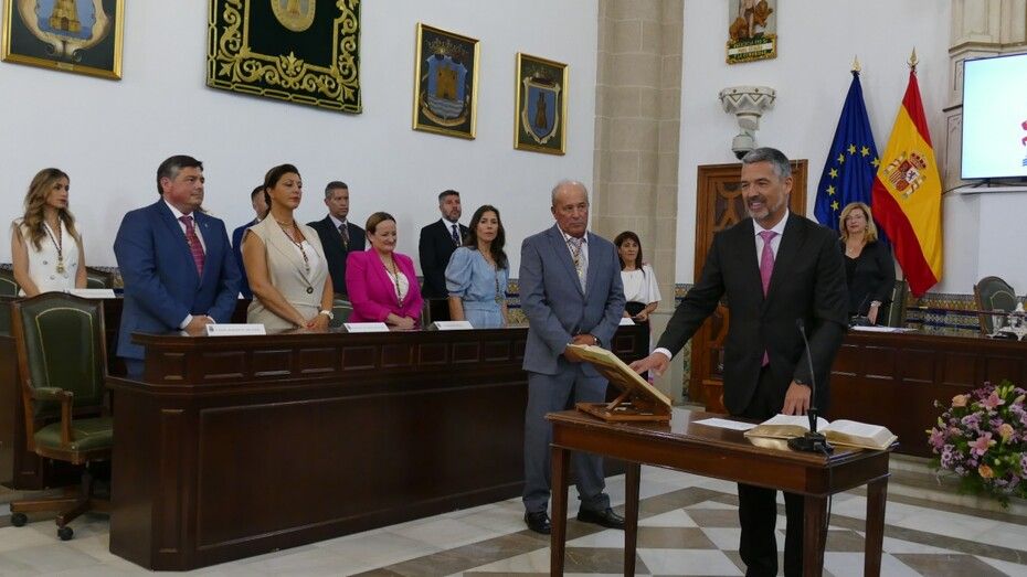 Os dejamos la secuencia de fotos de los concejales jurando o prometiendo su cargo y la foto con los componentes de la Mesa de Edad, compuesta por Juan Antonio Harana y Marina Martín-Arroyo, en la sesión de pleno de investidura del alcalde de Rota, Javier Ruiz Arana, para el nuevo mandato 2023-2027.