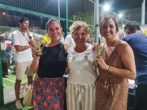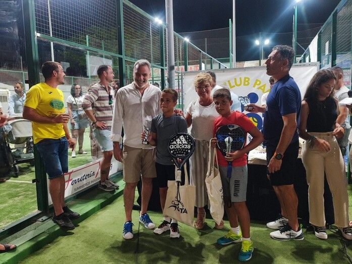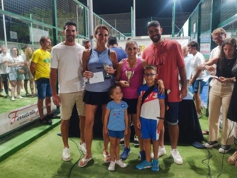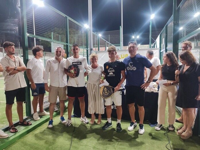 La delegada municipal de Deportes, Luisa Fernández, acompañó a los representantes del Club Pádel Rota en la entrega de diplomas que se desarrolló por la noche y la entrega de trofeos, felicitando al club por la organización y celebración de este torneo que conmemora las dos décadas de historia de esta entidad deportiva local.