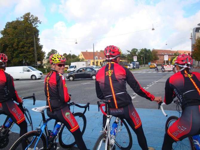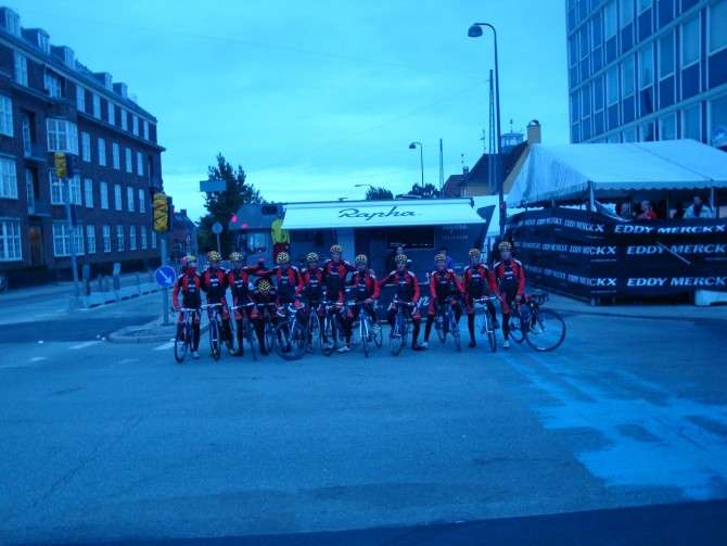 A las seis y media de la tarde quedamos para dar una vuelta en bici aunque fue un recorrido corto ya que aquí, a las siete y medía ya es de noche. Durante el paseo revolucionamos las calles de Copenhague, y sobre todo el carril bici, donde es impresionante la cantidad de gente que lo usa, y lo mejor, que lo RESPETA. Tuvimos que hacer una parada técnica en una tienda de bicicletas para ajustar algunas cosas de las bicis y los transeúntes aprovecharon para sacarnos fotos y animarnos.