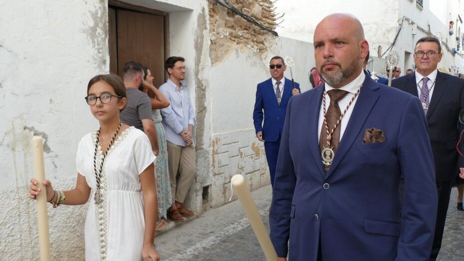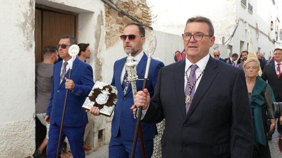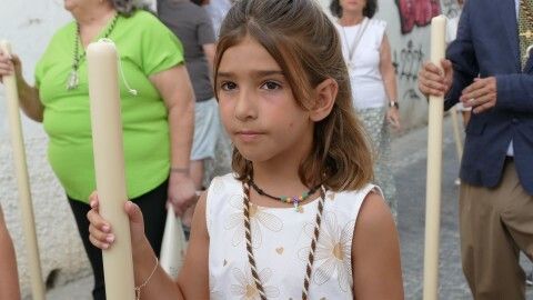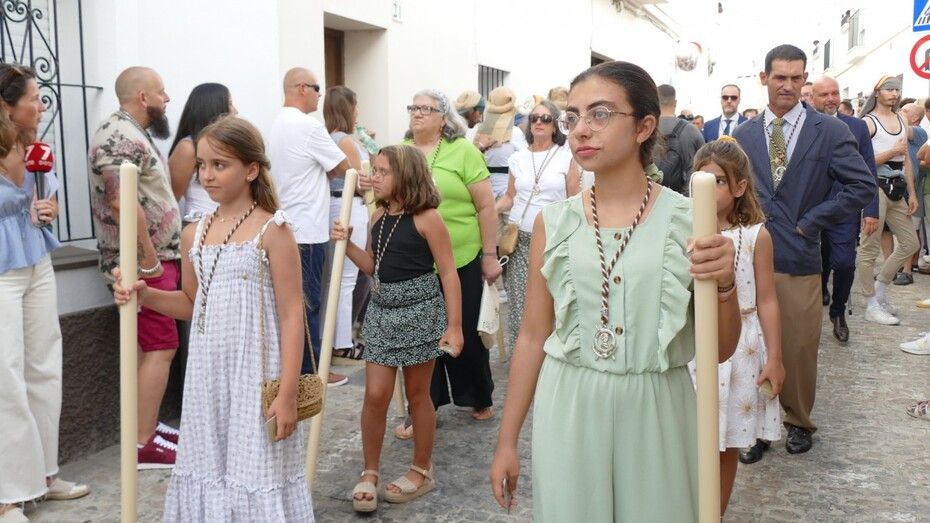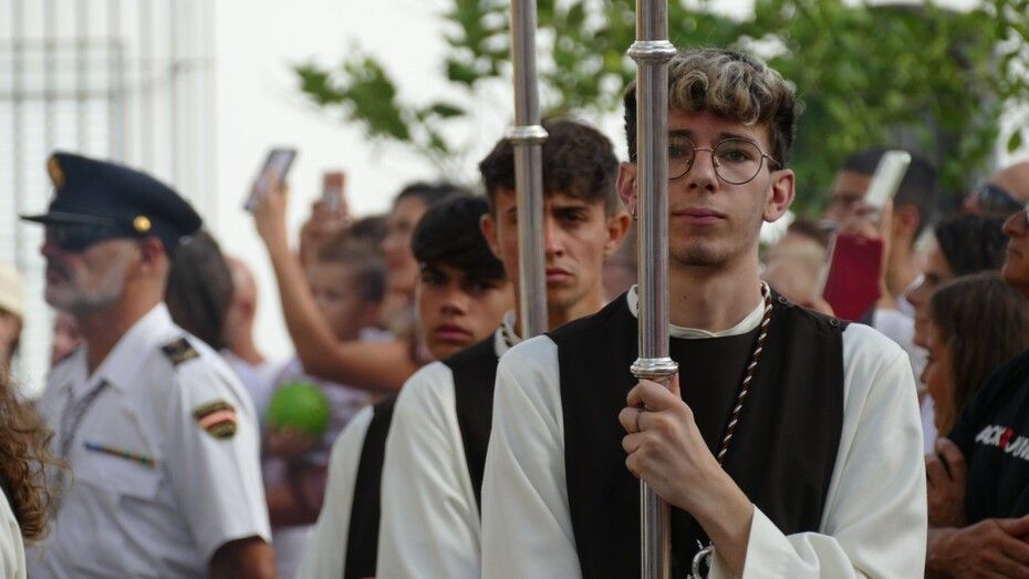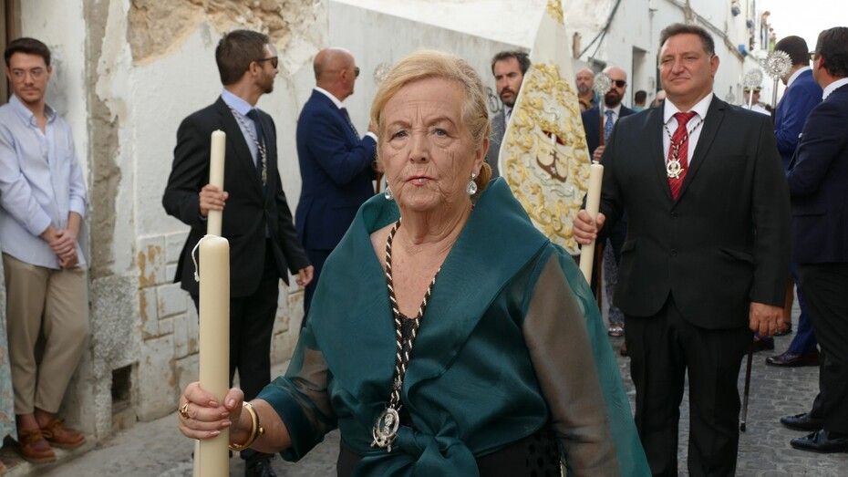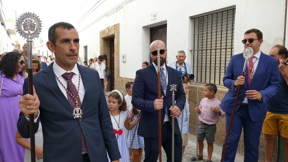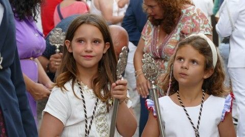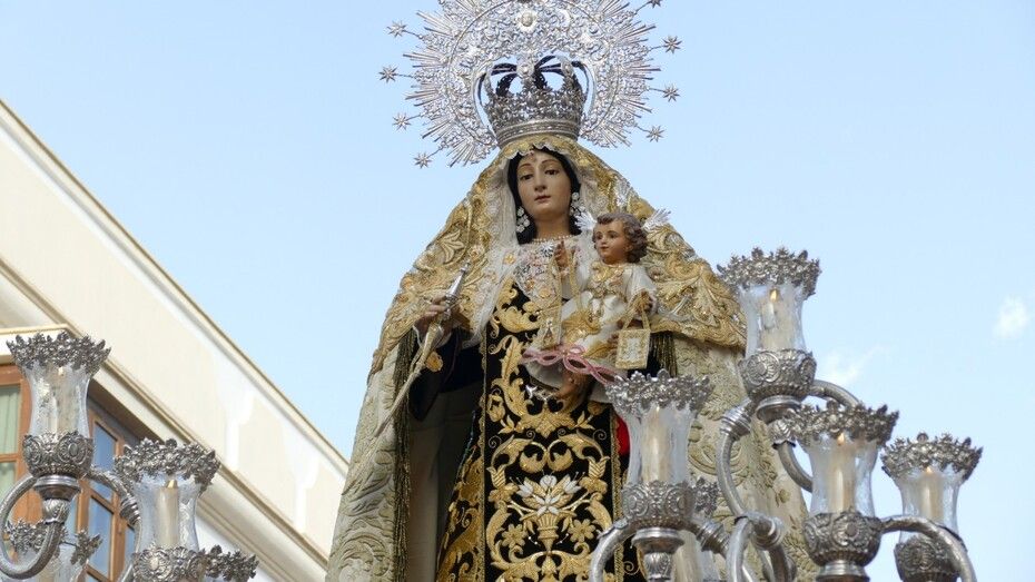 El repique de campanas desde la parroquia de Nuestra Señora de la O anunciaba la salida de la virgen en una plaza Bartolomé Pérez e inmediaciones que esperaba llena de público para verla en el día de su onomástica Lucía su saya y manto nuevos estrenados el año pasado, y unos pendientes restaurados que podrían datar de finales del siglo XVIII o principios del XIX.