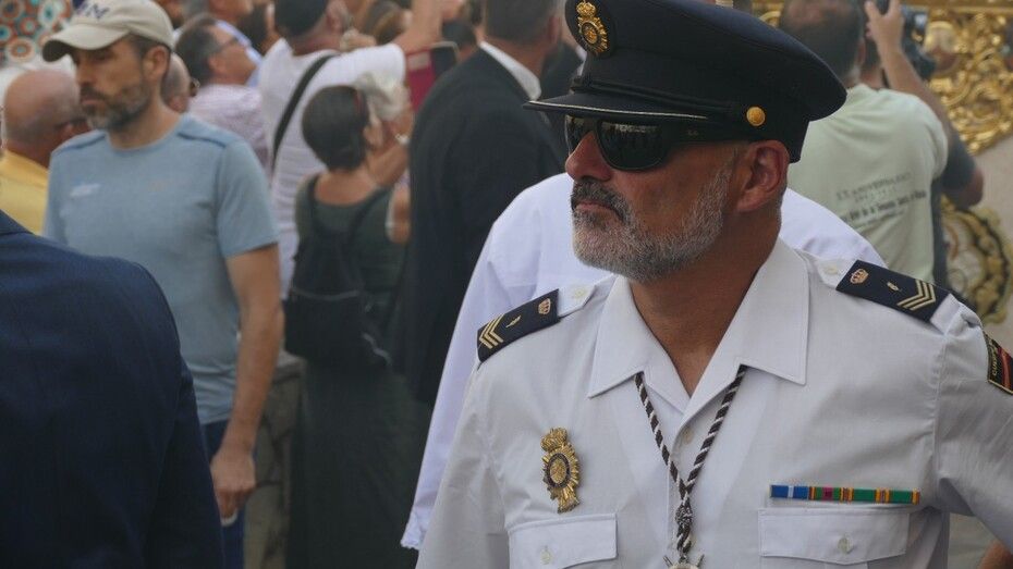 La virgen ha paseado luciendo esplendorosa en un paso que un año más ha estado guiado por el capataz Manuel Jesús Pizones y escoltado por dos policías nacionales de ASACRO.