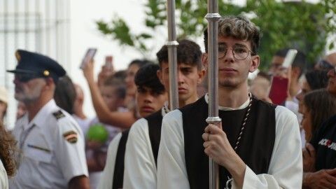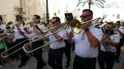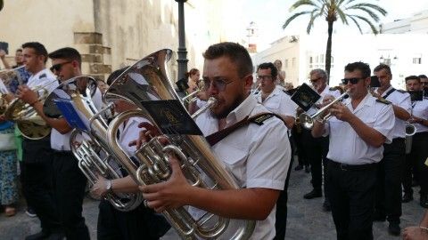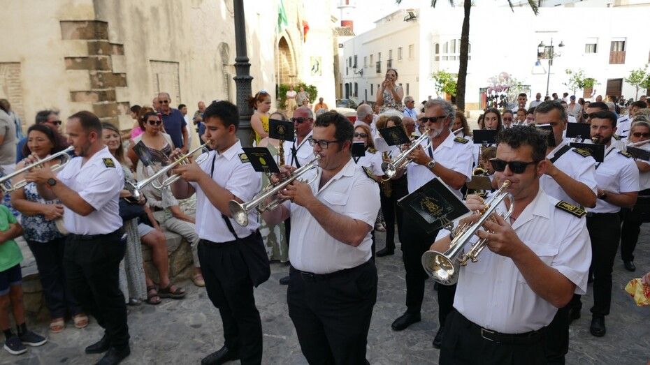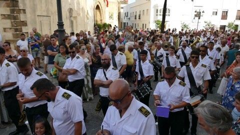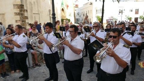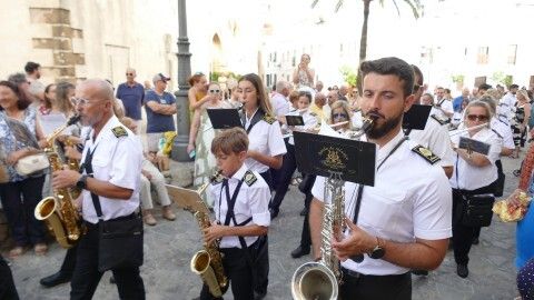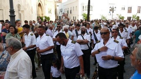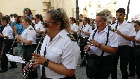 Al son de las marchas interpretadas por la banda de música de la Hermandad de Nuestro Padre Jesús Nazareno, que lleva acompañando a Nuestra Señora del Carmen 26 años, la virgen ha recorrido el centro y a medida que ha ido cayendo la tarde, han sido cada vez más los ciudadanos que se han acercado para verla procesionar hasta puntos como la plaza de San Roque que estaban lleno. Ahí se ha podido escuchar, entre otras marchas, la dedicada especialmente a la virgen, compuesta por el músico de la banda Alejandro Barba, titulada "Hijos del Carmen", que se estrenó el año pasado por estas bodas de plata acompañando a la patrona marinera..