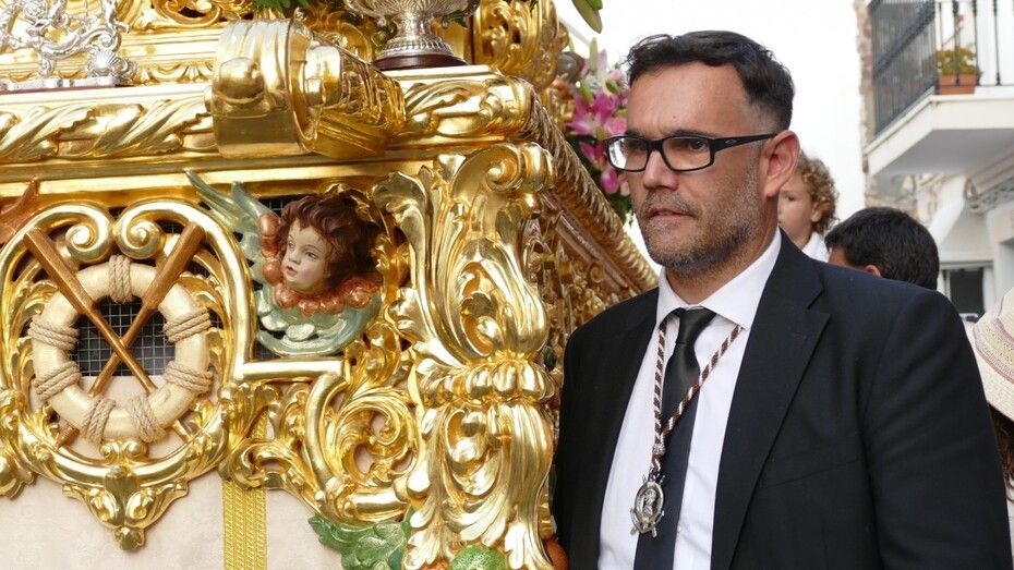 Ha sido un fin de semana intenso para la Hermandad de Nuestra Señora del Carmen que ayer, aunque no pudo completar la procesión marítima de la virgen por culpa del viento de poniente, sí pudo dar un corto paseo por la dársena del muelle pesquero para bendecir las aguas. Hoy, y aunque también soplaba el viento, este no entorpecía la salida de la Reina de los Mares por las calles de Rota.