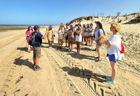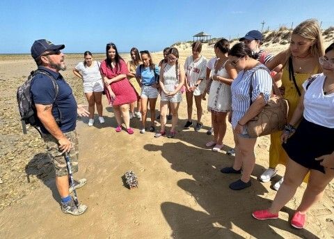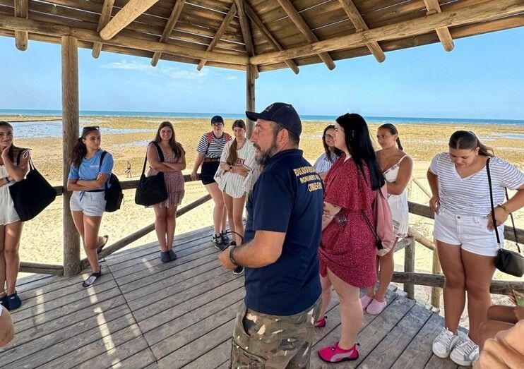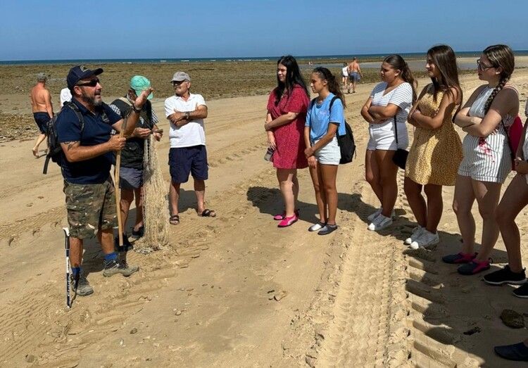 [Img #198143]Esta visita guiada, que resulta muy didáctica y distendida, enseña a las jóvenes curiosidades y parte de la historia de Los Corrales de Rota, ya que han podido ver y conocer de primera mano una de las artes milenarias de captura de peces en la costa roteña, además de  ir conociéndose entre ellas.