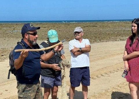 Un representante de la Asociación de Corraleros y Pescadores de a Pie de Rota fue el encargado de guiar a las jóvenes en esta visita en la que pasearon por estas estructuras milenarias viendo “in situ” las artes de captura de peces practican en estos corrales, las labores de mantenimiento que se llevan a cabo en este espacio, así como el valor medioambiental y cultural de este Monumento Natural de Andalucía enclavado en la costa roteña.