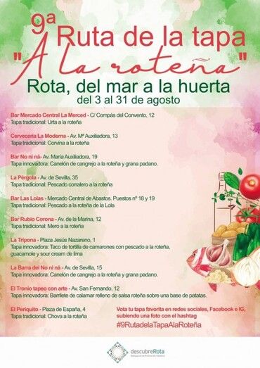 Esta ruta gastronómica, puesta en marcha por la delegación municipal de Turismo junto con una decena de bares y restaurantes locales, se iniciará el día 3 de agosto, coincidiendo con la Fiesta de la Urta, y terminará el día 31 de agosto. Durante este tiempo, los bares y restaurantes participantes ofrecerán una serie de creaciones culinarias con pescado o marisco “a la roteña”, apostando así por difundir la gastronomía local.